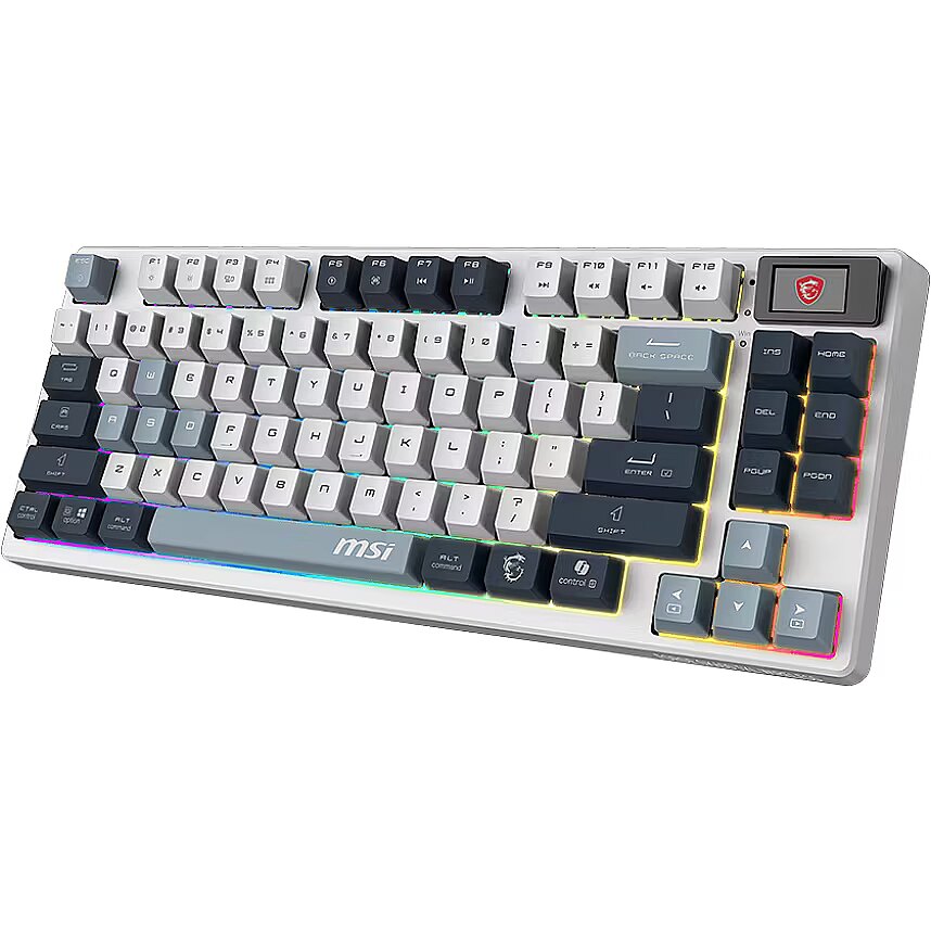 LongDesc - The MSI FORGE GK600 TKL WIRELESS is a versatile tenkeyless keyboard with 2.4GHz wireless, Bluetooth, and wired modes. It features hot-swappable linear mechanical switches, durable PBT keycaps, sound-dampening gaskets, and a 1.06-inch display. With RGB lighting and a 4000mAh battery, it's ideal for gamers and creators.ESSENTIAL KEYS, SENSATIONAL TYPINGThis keyboard features a tenkeyless design that saves desk space and boosts portability without sacrificing performance. Its linear mechanical switches offer smooth, responsive keystrokes, perfect for fast-paced gaming or precise typing. Compact yet powerful, it’s designed for those who value efficiency and style.TAILOR YOUR SWITCH ANYTIMEExplore the versatility of this keyboard, which enables you to effortlessly hot-swap default mechanical switches with third-party switches (5-pin) without any soldering. This empowers you to easily customize your typing experience, offering flexibility and long-term durability for your keyboard setup.RESILIENT AESTHETICSEquipped with dye-sublimated PBT keycaps, known for their exceptional durability and premium feel. These keycaps resist wear and fading, ensuring legends stay sharp and vibrant even after prolonged use. The textured surface provides a comfortable, reliable typing experience that lasts.ENJOY THE SILENCEMultiple layers of sound-dampening foam and gaskets, expertly engineered to isolate and preserve the pure sound of each key switch. This ensures a clean, satisfying acoustic experience, free from unwanted noise.INTUITIVE CONTROL & DISPLAYA 1.06-inch display shows essential information like battery status, RGB backlighting profiles, and brightness levels, keeping you informed at a glance.VERSATILE CONNECTIVITYOffering flexible connectivity with 2.4GHz wireless via the included USB dongle, Bluetooth, and wired mode through a USB Type-C connection, ensures seamless performance across all your devices.ENDURANCEA powerful 4000mAh rechargeable battery delivers up to 20 days of use with backlighting turned off. This extended battery life reduces the need for frequent recharges, providing greater convenience for long gaming or work sessions. When it's time to recharge, the battery fully powers up in just 6 hours via USB Gen 3 while the user can continue gaming.INSTANT INTERACTIONTake control with convenient hotkeys that let you quickly adjust lighting effects, manage media controls, and access widgets, enhancing your overall interaction with smooth functionality and rapid adjustments.ROLLOVER PRECISIONExperience seamless precision with N-key rollover, ensuring every keystroke is accurately registered for smooth and responsive performance in any scenario.PREFERRED ANGLESThe keyboard features two adjustable feet offering two tilt angles, allowing for a more ergonomic wrist position during extended use.CREATE YOUR VIBEWith 20 predefined lighting effects and 5 adjustable levels of speed and brightness, the RGB backlighting offers a personalized aesthetic that enhances both function and style. Easily creating a dynamic atmosphere for gaming or setting a more subdued tone for work, the customizable options provide flexibility to match any preference or environment.