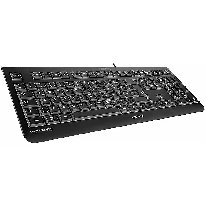 LongSummaryDescription - CHERRY KC 1000. Keyboard form factor: Full-size (100%). Keyboard style: Straight. Connectivity technology: Wired, Device interface: USB, Keyboard layout: QWERTY. Cable length: 1.8 m. Recommended usage: Home/Office. Product colour: Black