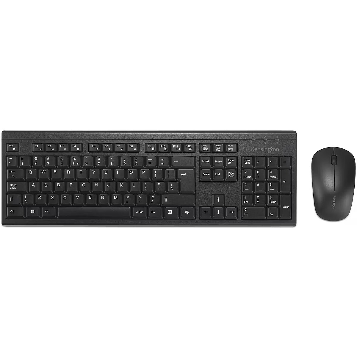 LongSummaryDescription - Kensington K75560WW. Tastatūras forma: pilna izmēra (100 %), savienojamības tehnoloģija: bezvadu, ierīces interfeiss: RF bezvadu + Bluetooth, tastatūras taustiņu slēdzis: membrāna, tastatūras izkārtojums: QWERTY, ieteicamais lietojums: birojs. Produkta krāsa: melna. Piegādāts ar peli.