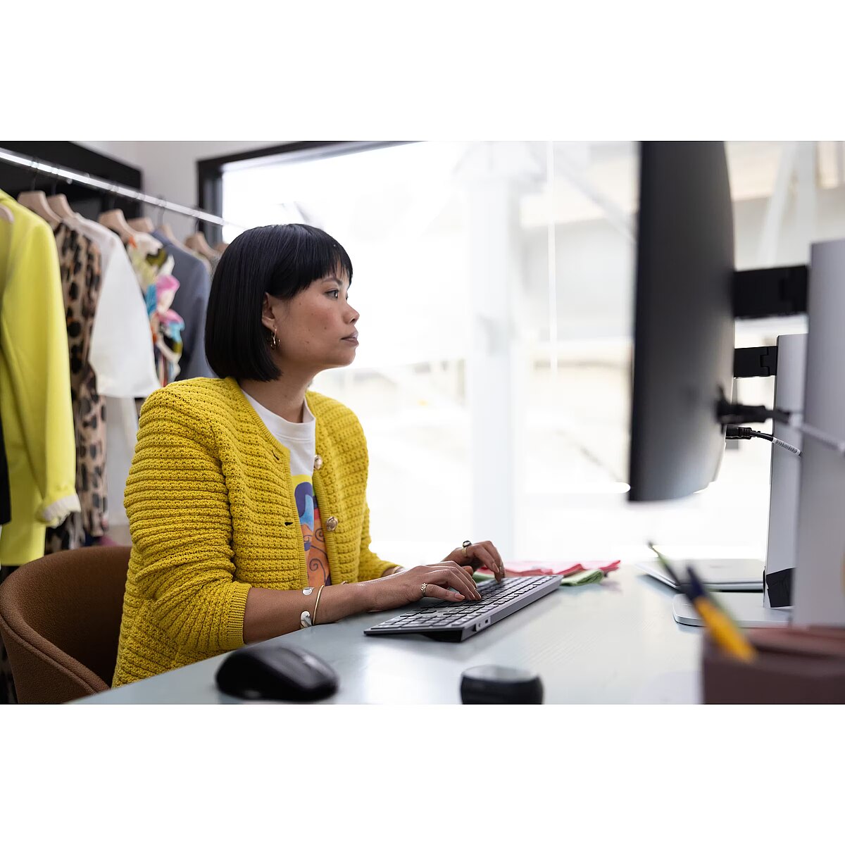 LongDesc - Uzlabojiet savu darba dienuDarbojieties droši, izmantojot tehnoloģijas, kas nodrošina jūsu produktivitāti jebkurā laikā un vietā. Šī pārdomāti izstrādātā vairāku ierīču bezvadu tastatūra darbojas tikpat intensīvi kā jūs, izmantojot īpaši ātras uzlādes superkondensatora tehnoloģiju, nepārtrauktu savienojamību un pielāgošanu.