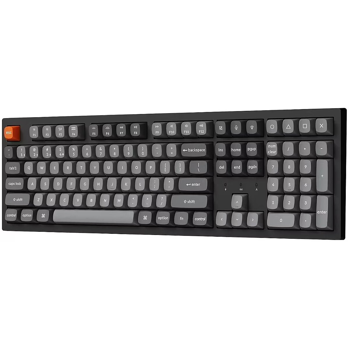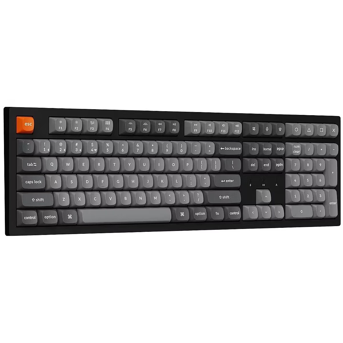 Summary - Keychron K10 Max QMK. Keyboard form factor: Full-size (100%). Keyboard style: Straight. Connectivity technology: Wired & Wireless, Device interface: USB + RF Wireless + Bluetooth, Keyboard key switch: Mechanical, Keyboard number of keys: 108. Backlight type: RGB LED. Recommended usage: Universal. Product colour: Black