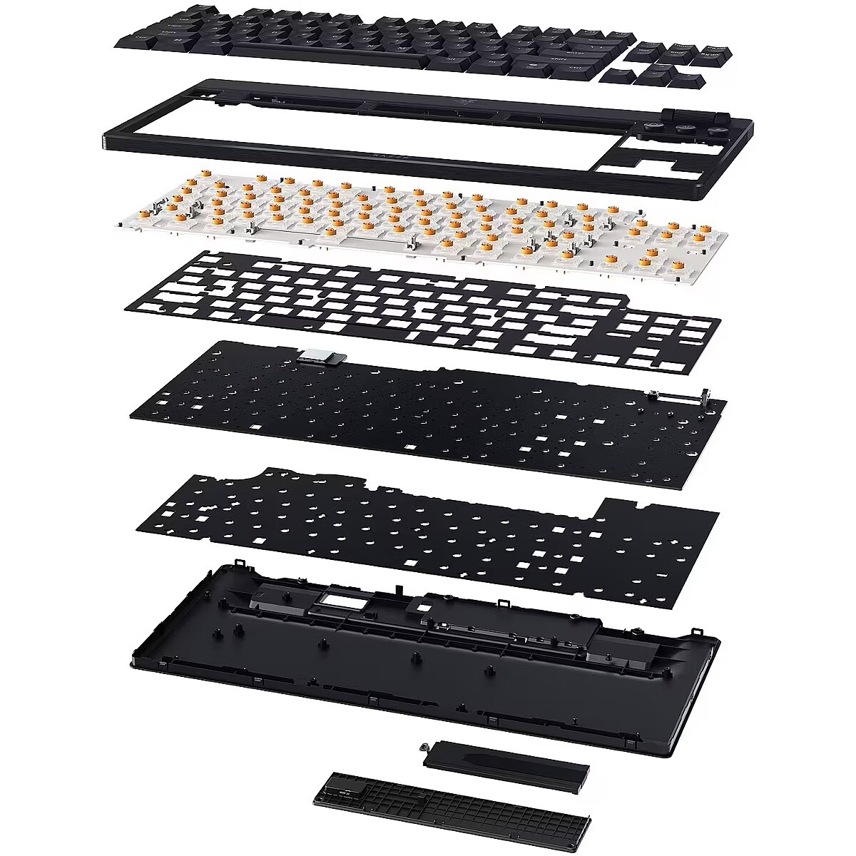 Dual sound-dampening layers, factory-lubed stabilizers, and a stainless-steel mounting plate provide a clean, satisfying keystroke feel.