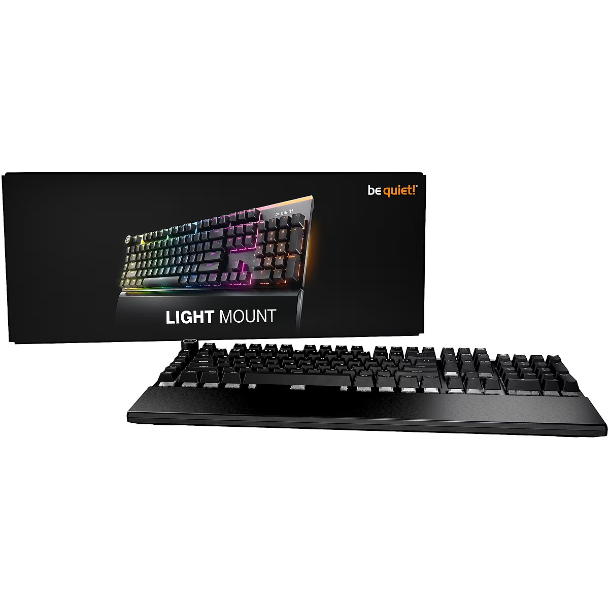 LongSummaryDescription - be quiet! Light Mount Silent Tactile US ANSI. Keyboard form factor: Full-size (100%). Keyboard style: Straight. Connectivity technology: Wired, Device interface: USB, Keyboard key switch: Mechanical, Keyboard layout: QWERTY. Backlight type: RGB LED, Wrist rest. Recommended usage: Gaming. Product colour: Black