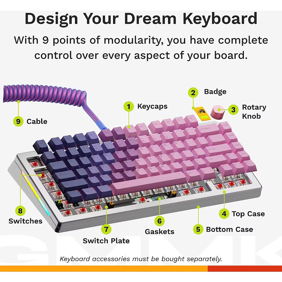 LongDesc - The world’s most customizable gaming keyboard capable of over 1 billion possible configurations, offering gamers complete control over every aspect of their experience: Gaming performance, typing experience and aesthetics.