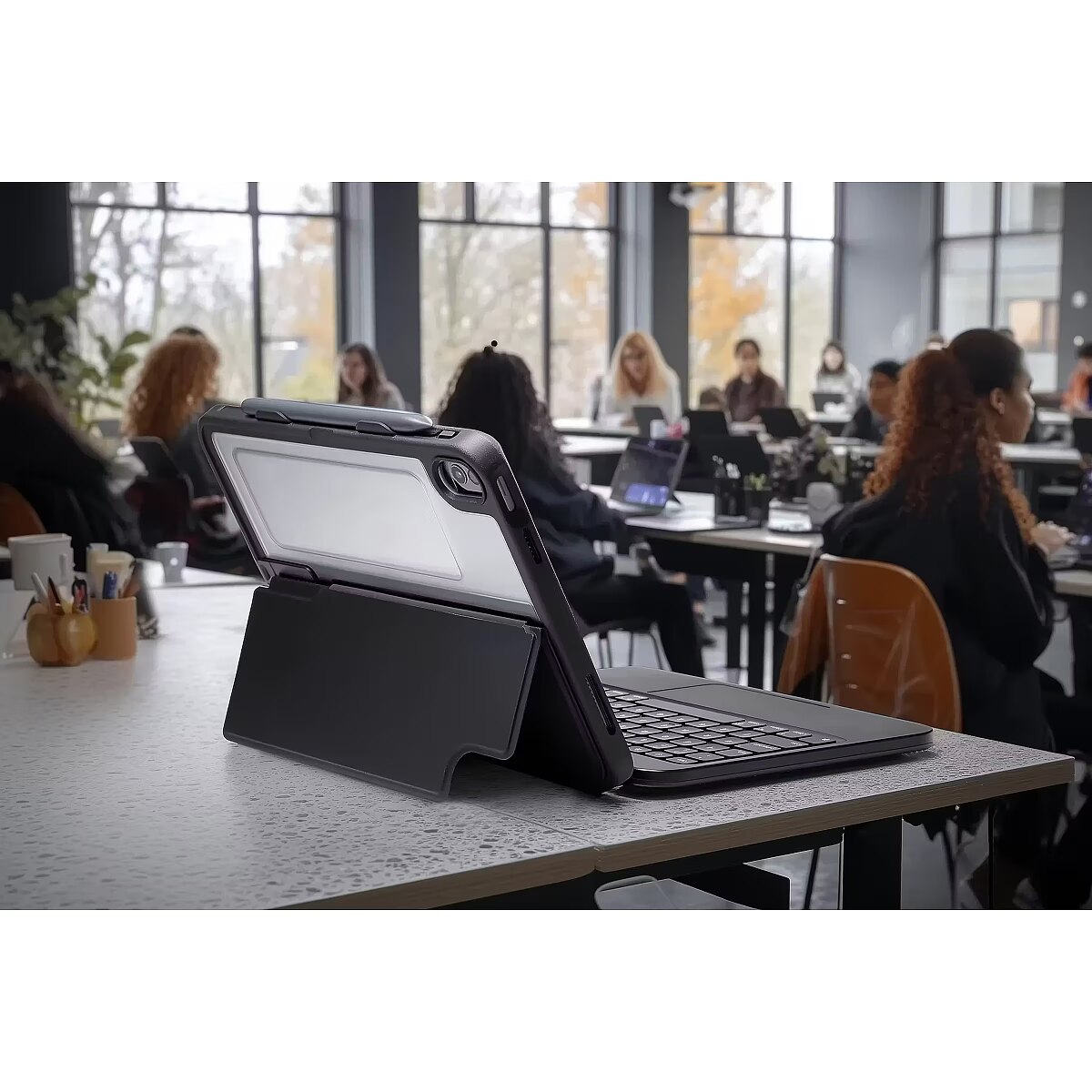 LongDesc - Tough Keys ir izturīga un uzticama tastatūra un futrālis tavam iPad. Pateicoties USB-C tiešajam savienojumam, jums nav nepieciešams Bluetooth, lai izveidotu savienojumu, vai baterijas, lai uzlādētu. Tough Keys ir bloķējoši taustiņi, kas neizlec. Tai ir aktīvās birkas logs, pildspalvas turētājs, audio ports, un tā ir ūdensizturīga. Korpuss nodrošina 6,6 pēdu aizsardzību pret kritieniem. Šis ir jūsu iPad risinājums, ar kuru varat doties visur un darīt visu.Jaunākais, ko varat darīt ar savu iPad.