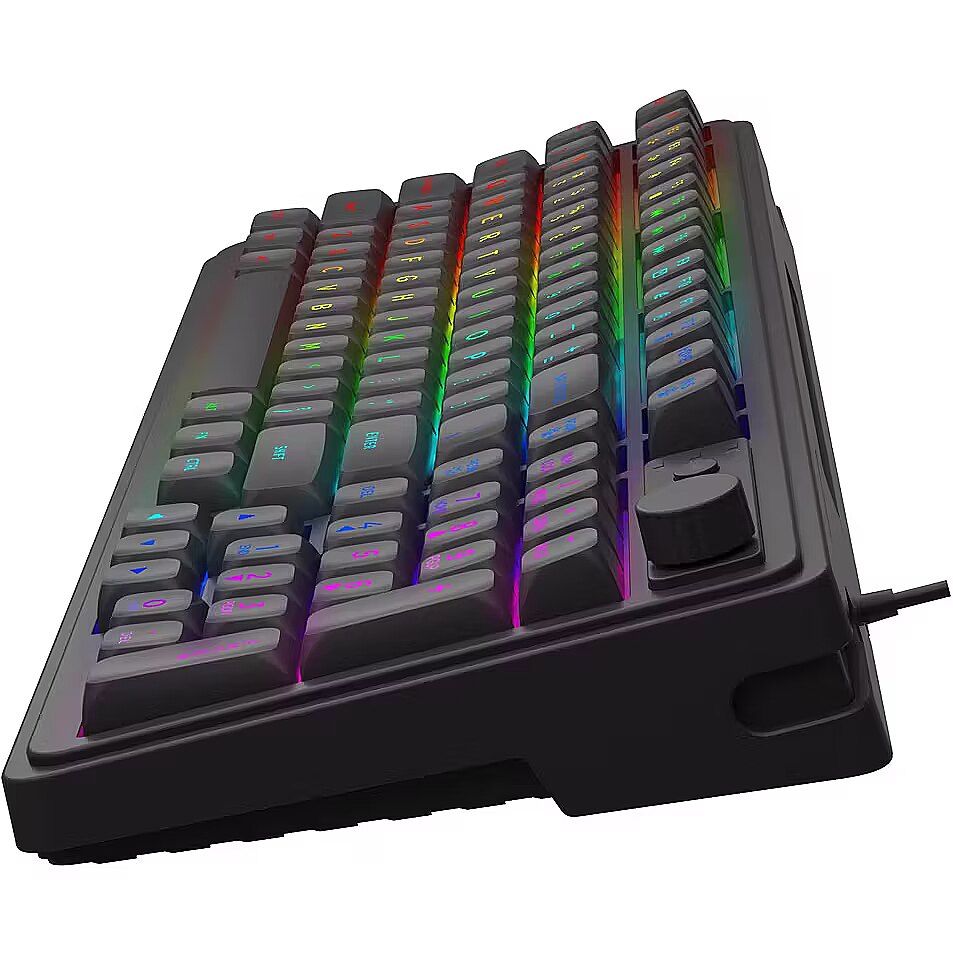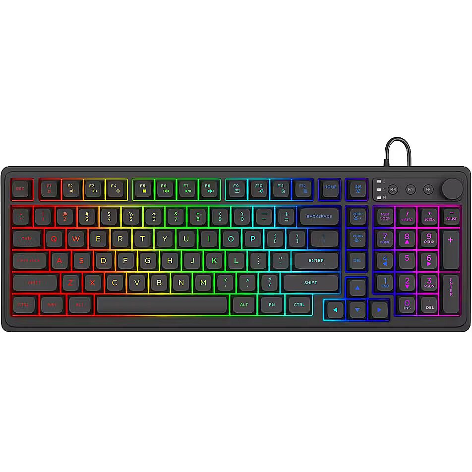 Apraksts - Pieslēguma tips: Vada, Taustiņu slēdži: Membrānas, Savienošana ar datoru: USB, Apgaismojums taustiņiem: Ir, Valodas: ENG, Komplektācija: Klaviatūra, Krāsa: Melna, Garantija: 2 gadi
