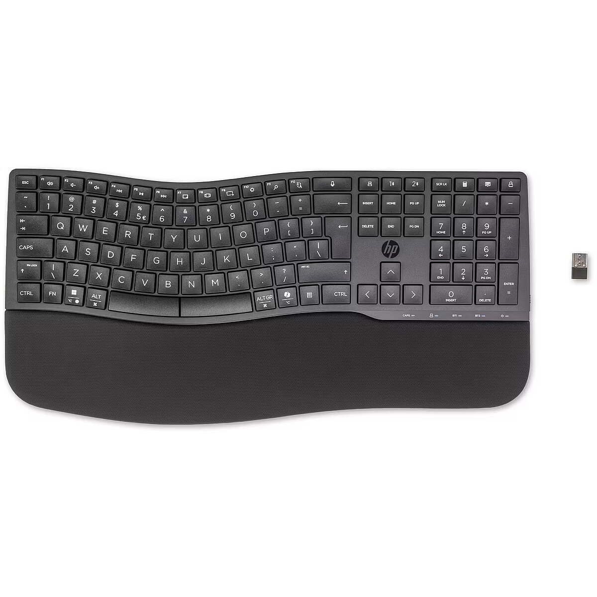 ShortSummaryDescription - HP 680 Comfort Dual-Mode Keyboard, Full-size (100%), Wireless, RF Wireless + Bluetooth, QWERTY, Black