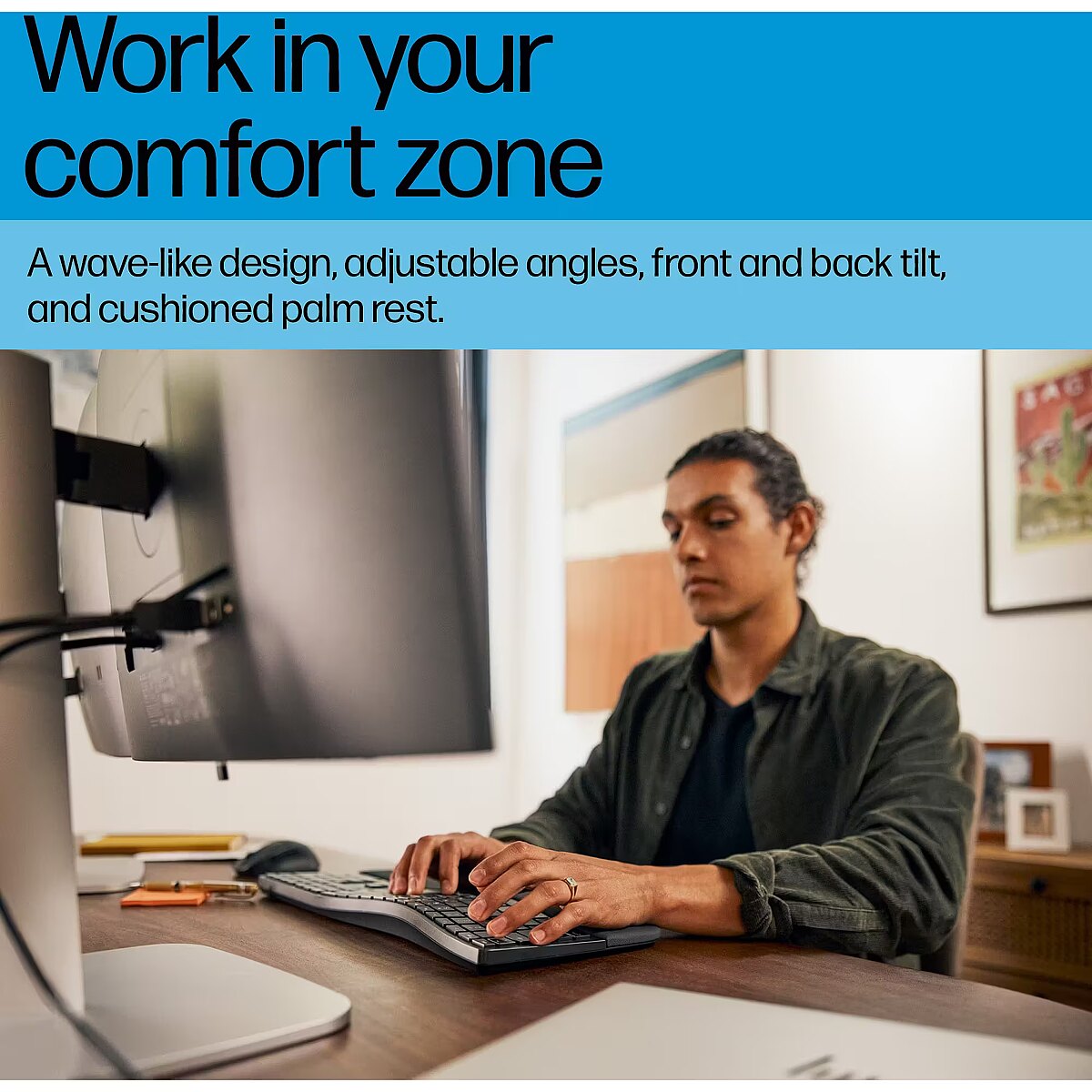 Vajadzīga klaviatūra, kas atbilst jūsu stilam? HP 680 Comfort Dual-Mode klaviatūra ir tieši jums piemērota. Ar regulējamiem rakstīšanas leņķiem, programmējamiem taustiņiem un drošu savienojamību šī klaviatūra piedāvā visu nepieciešamo komfortu, pielāgojamību un savietojamību.