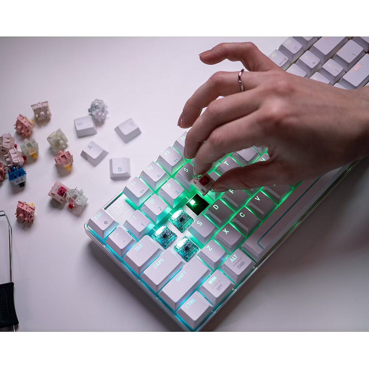 LongProductName - TKL (80 %), magnētiska, 2,4 GHz/Bluetooth/USB, RGB, 88 taustiņi, balta