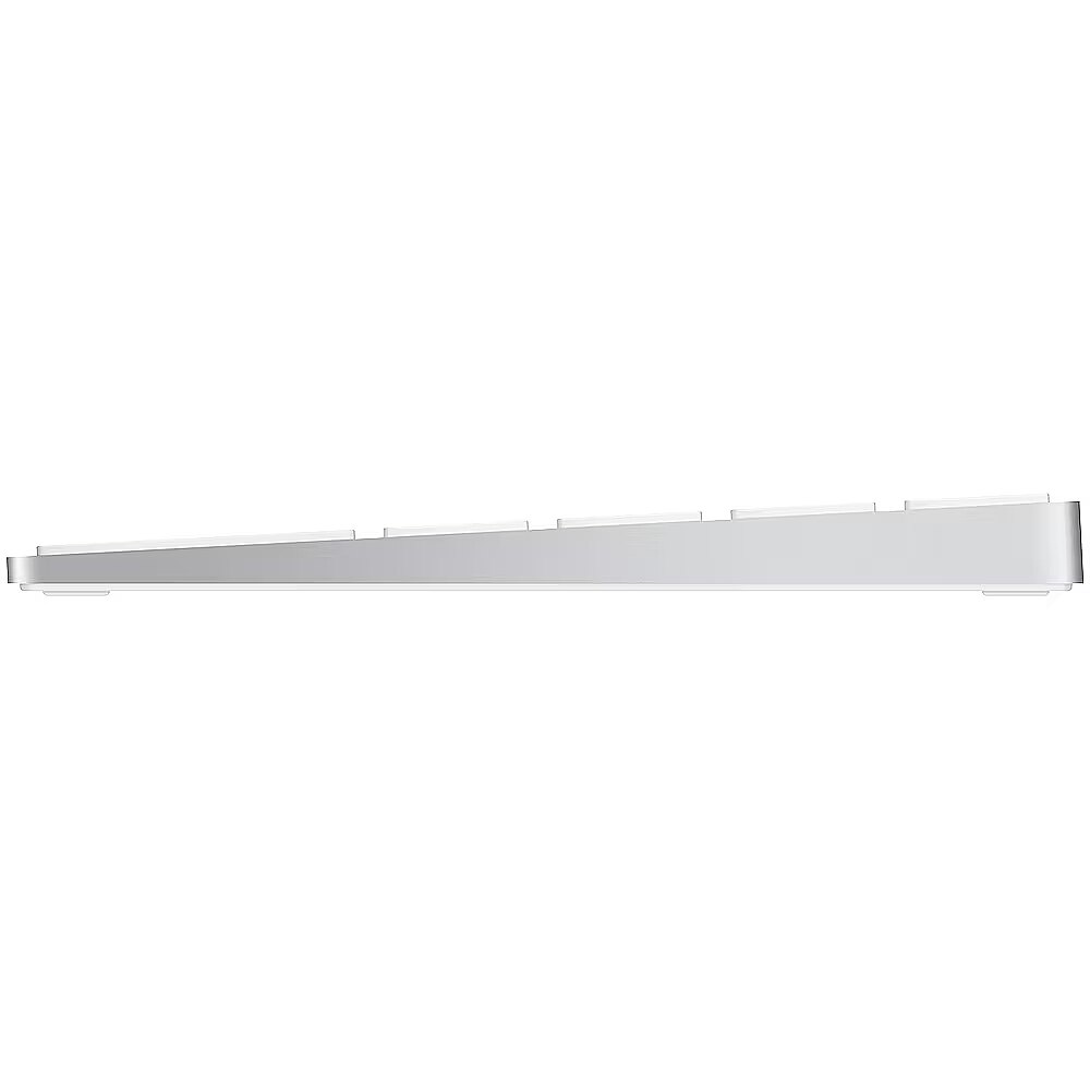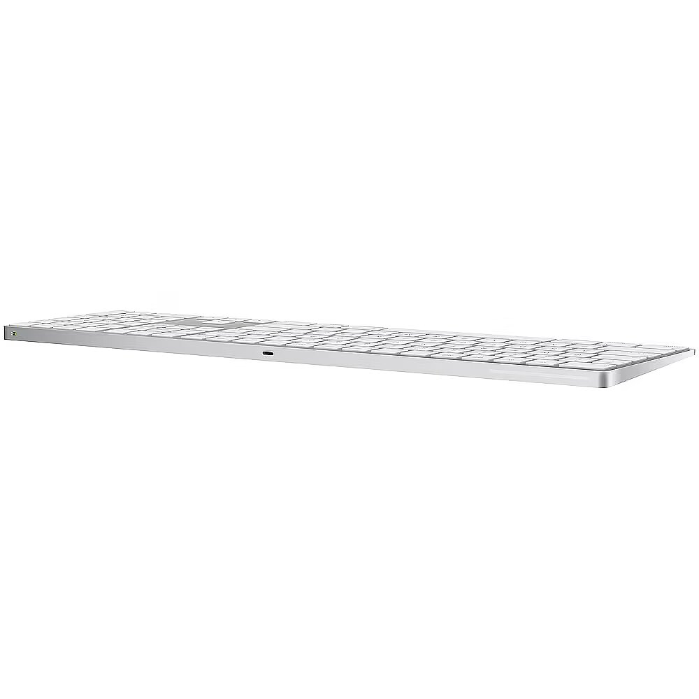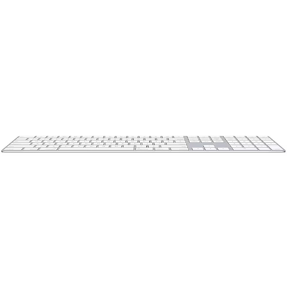 MediumDescription EN - Magic Keyboard with Numeric Keypad features an extended layout, with document navigation controls for quick scrolling and full-size arrow keys for gaming. A scissor mechanism beneath each key allows for increased stability, while optimized key travel and a low profile provide a comfortable and precise typing experience. The numeric keypad is also great for spreadsheets and finance applications. And the built-in, rechargeable battery is incredibly long-lasting, powering your keyboard for about a month or more between charges.