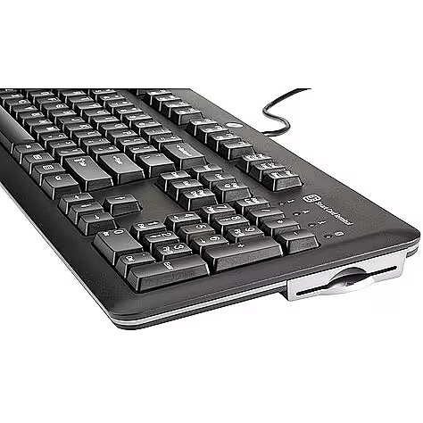 LongDesc - Add an extra layer of security at the point of data entry with the HP USB SmartCard CCID Keyboard, which includes an integrated smart card reader to help simplify access procedures and prevent unauthorized access to your PCs and networks.Combine with a smart card and HP Client Security to create a secure and convenient way to login.Enjoy enhanced security features vs. previous-generation technology with an integrated smart card reader that's compatible with Class A, B, and C smart cards to help prevent hacking and firmware changes in the keyboard.Get a sleek, full keyboard that matches the latest HP Business PCs and is constructed with high-impact materials to withstand daily business use.Lubricated keys help keep your work environment quiet. The spill drain feature makes the keyboard easy to clean when minor accidents happen.Connect to any USB port on your PC, and you're ready to go. The included 6 ft (1.8m) USB cable gives you plenty of room to move the keyboard around your workspace.