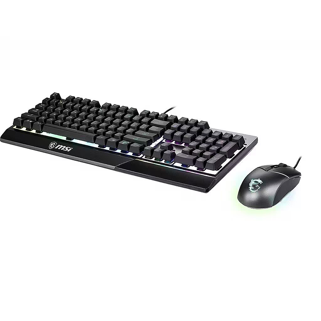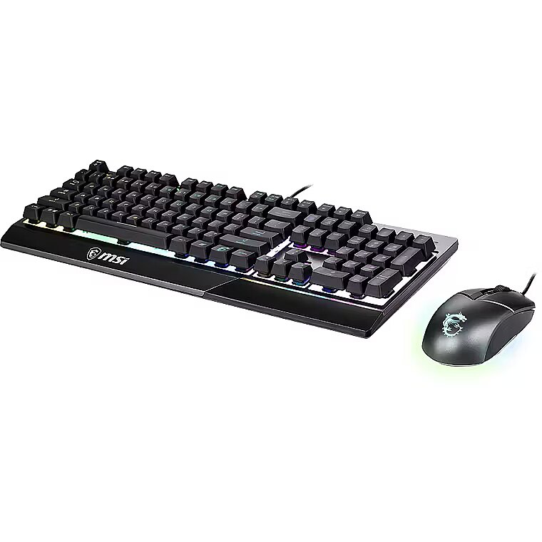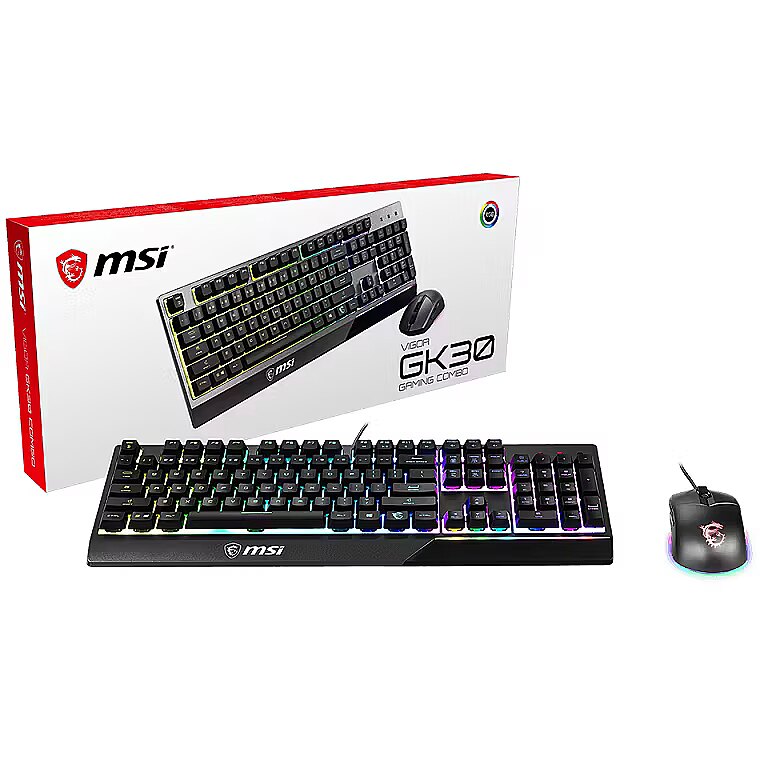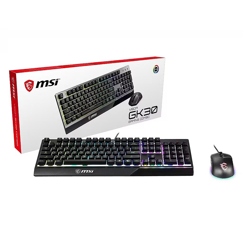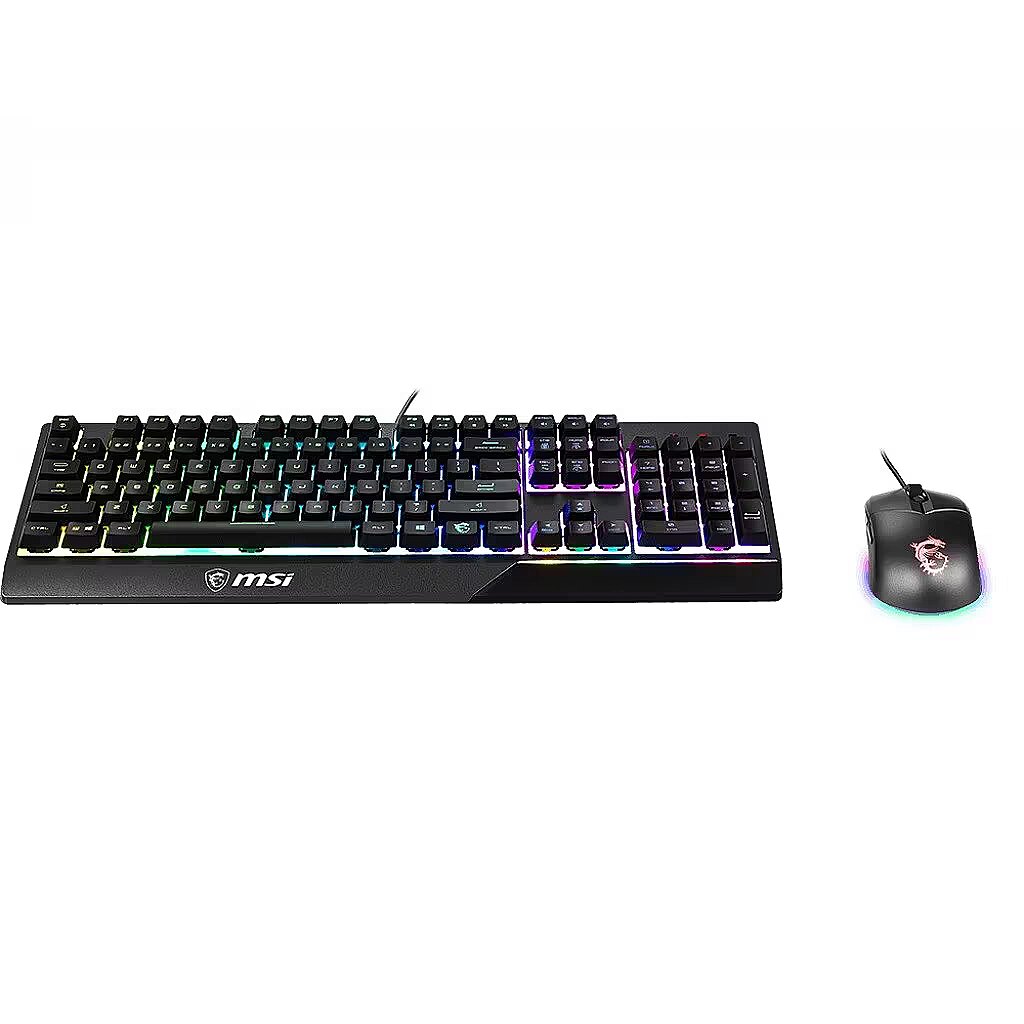 ShortSummaryDescription - MSI VIGOR GK30 COMBO RGB MEMchanical Gaming Keyboard + Clutch GM11 Gaming Mouse ' UK Layout, 6-Zone RGB Lighting Keyboard, Dual-Zone RGB Lighting Mouse, 5000 DPI Optical Sensor, RGB Mystic Light', Wired, USB, Mechanical, QWERTY, RGB LED, Black