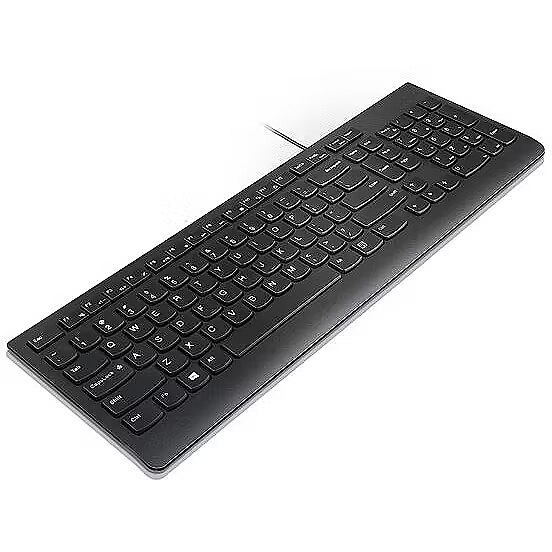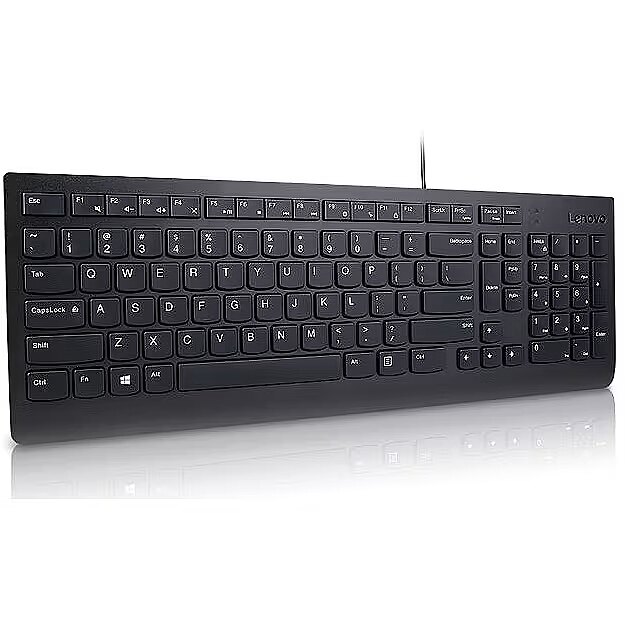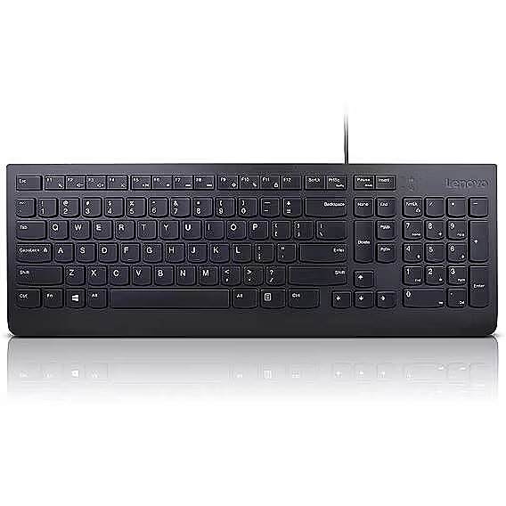 LongSummaryDescription - Lenovo Essential. Keyboard form factor: Full-size (100%). Keyboard style: Straight. Connectivity technology: Wired, Device interface: USB, Keyboard key switch: Membrane, Keyboard layout: QWERTY. Cable length: 1.8 m. Recommended usage: Universal. Product colour: Black
