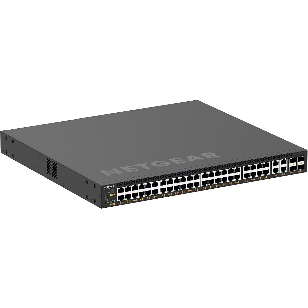 LongSummaryDescription - NETGEAR M4350-44M4X4V. Switch type: Managed, Switch layer: L3. Basic switching RJ-45 Ethernet ports type: 2.5G Ethernet (100/1000/2500), Basic switching RJ-45 Ethernet ports quantity: 48. Full duplex. MAC address table: 16000 entries, Switching capacity: 500 Gbit/s. Networking standards: IEEE 802.1D, IEEE 802.1Q, IEEE 802.1Qav, IEEE 802.1s, IEEE 802.1w, IEEE 802.1x, IEEE 802.3, IEEE.... Power connector: AC-in jack. Power over Ethernet (PoE). Rack mounting, Form factor: 1U