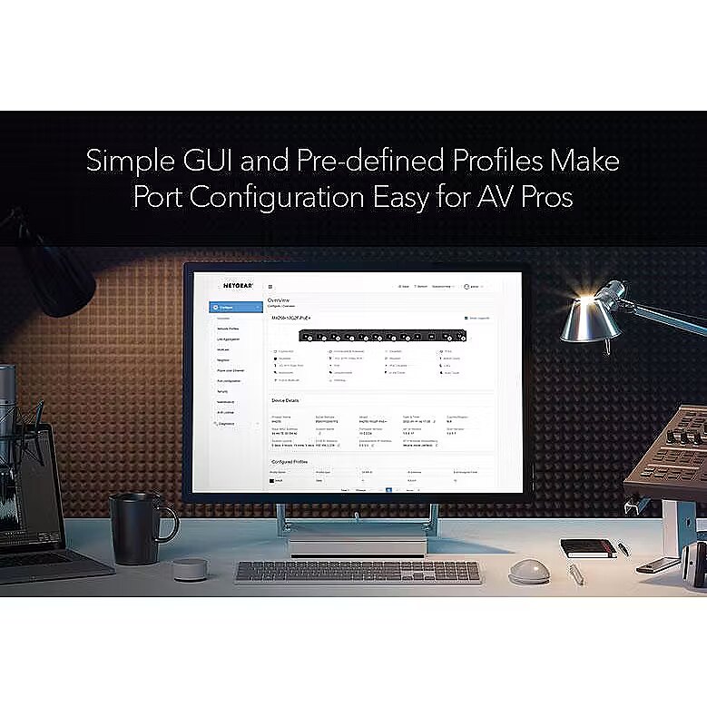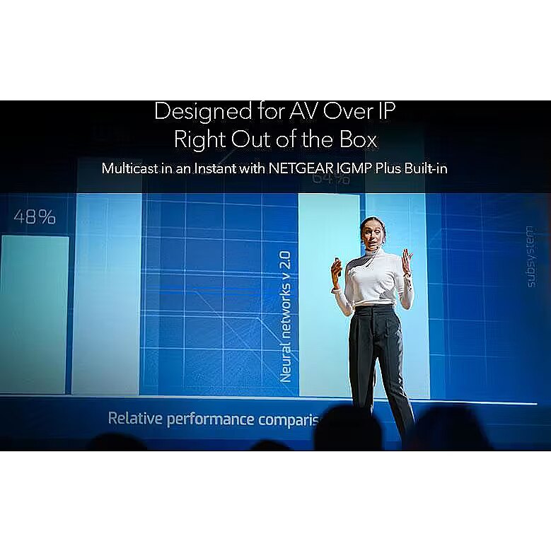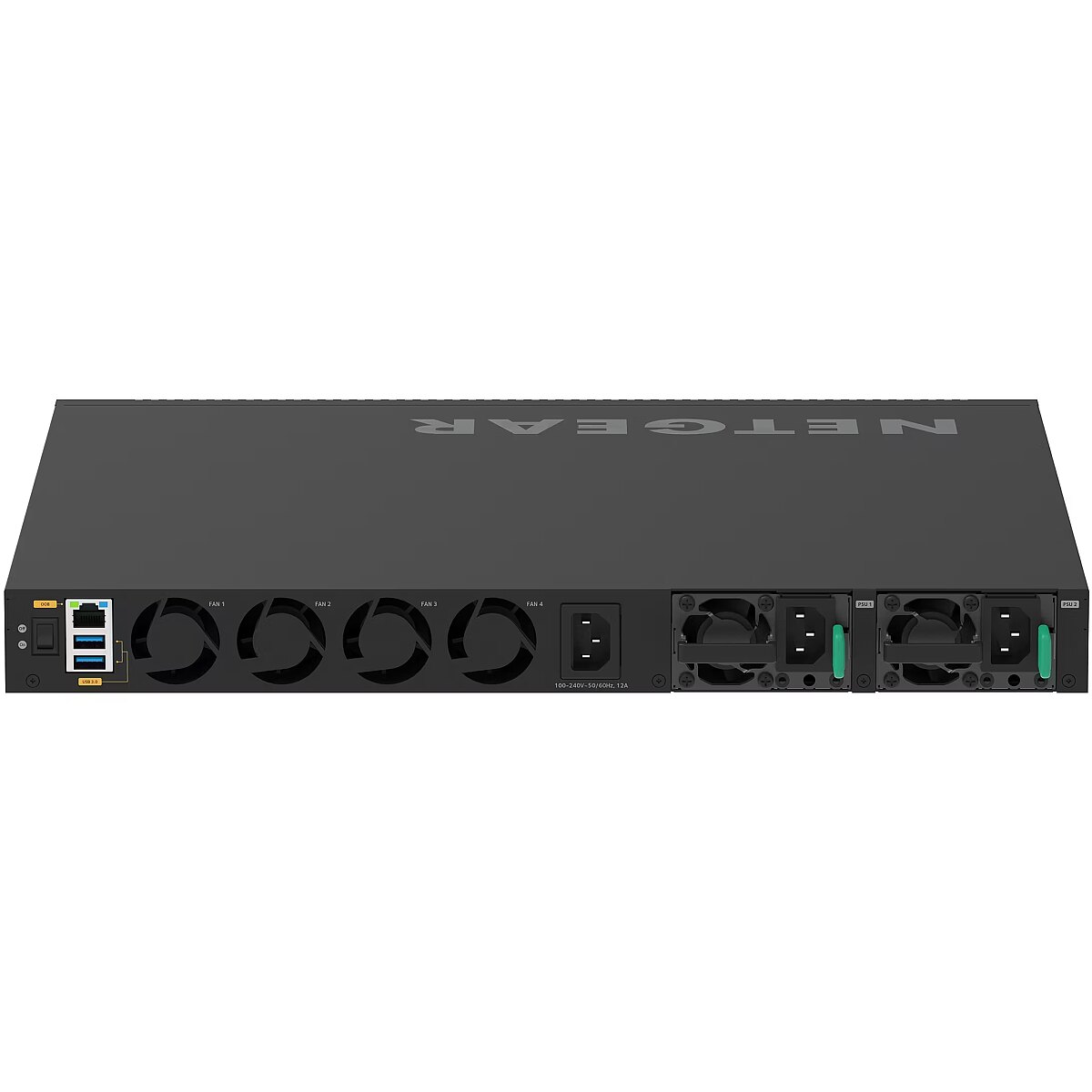 LongDesc - POWER AND THROUGHPUTEdge to core stackable platform, from 1 Gigabit to 100 Gigabit, all within 15.75in (40cm) of depth.Groundbreaking AV GUIA simplified user interface makes it easy to assign configuration profiles to each port.Multicast in an InstantNETGEAR IGMP Plus™ provides multicast functionality right out of the box for most AV over IP applications.Sleek, Quiet DesignLess fan noise, and mounting ears included for rack mounting.Automatic ConfigurationAuto-trunk and auto-LAG functionality auto connects with other M4350 (and M4250) switches.FAST, EASY CONFIGURATION FOR AV PROSA streamlined interface enables factory default AV settings or user-specified AV profiles to be assigned to individual ports with just a few clicks.FOCUS ON THE EVENT NOT FAN NOISEMost models have quiet mode which greatly reduces fan noise.DESIGNED FOR AV OVER IP RIGHT OUT OF THE BOXWith built-in NETGEAR IGMP Plus™, there's little-to-no setup required for flawless Video over IP delivery. Enable multicasting right out of the box.