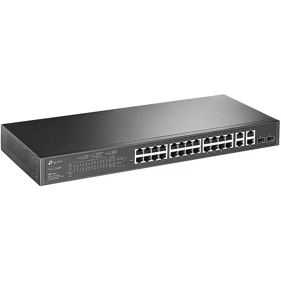 ShortSummaryDescription - TP-Link Omada SL2428P, Managed, L2, Fast Ethernet (10/100), Power over Ethernet (PoE), Rack mounting, 1U