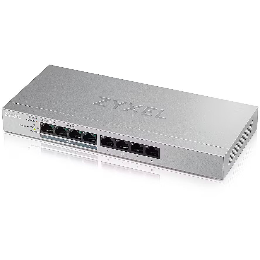 Apraksts - ZYXEL GS1200-8HP, 8 PORTU GIGABIT POE+ TĪMEKĻA PĀRVALDĀMS DATORA KOMUTATORS, 4X POE, 60 W