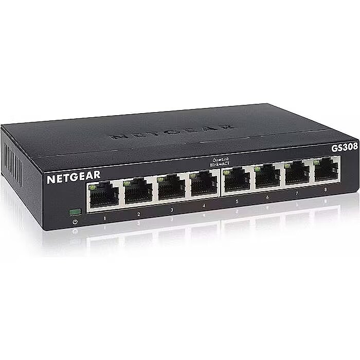 Title - NETGEAR GS308-300PES network switch Unmanaged L2 Gigabit Ethernet (10/100/1000) Black