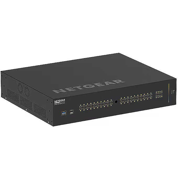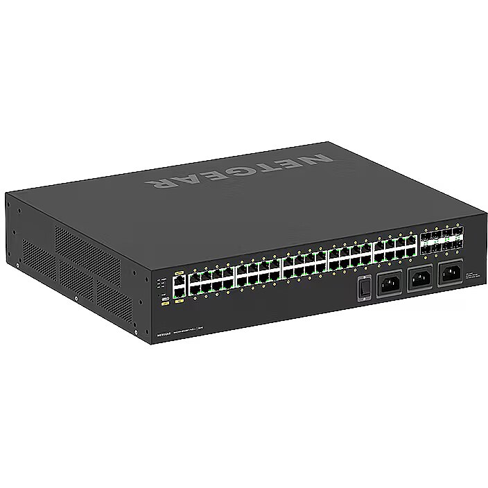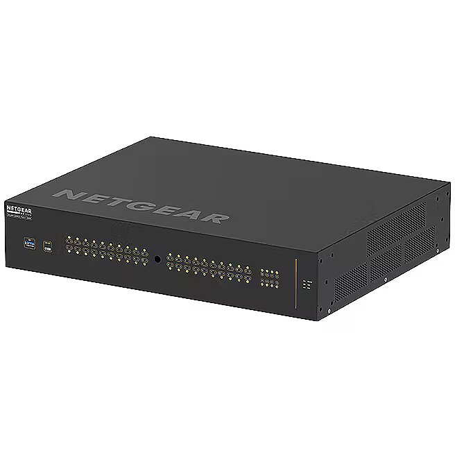 LongDesc - Pre-configured for out-of-the-box useNETGEAR IGMP Plus™ enables instant multicast functionality for most AV over IP installationsDedicated AV web-based GUI interfaceUnique interface designed for the AV professional with color-coded, port-based profilesProfiles for common audio protocolsQuickly assign profiles to ports for Dante, AES67, and AVB audio configurations. AVB Requires a separate licenseVideo profiles built-inSpecial profiles for NVX, SVSI, Q-SYS and Dante video profiles can be easily assigned to ports as neededUnique Automatic ConfigurationAuto-trunk and auto-lag functionality automatically configures other M4250 switches for use in star topology.Easier configuration with new AV GUIThe AV-oriented, web-based GUI permits factory or user-specified profiles to be assigned to individual ports as needed.Use in noise-sensitive environmentsAdjustable fans can be turned off if certain conditions are met. Even the default Quiet mode is quieter than most other switches.Get up and running fast with little engineering time requiredOur NETGEAR IGMP PlusTM feature is set from the factory to ensure out-of-the-box functionality for most AV over IP installationsMultiple mounting options provide ultimate flexibilityThreaded mounting holes sized to industry standards are built into the chassis for mounting behind a display or clamped to a truss.M4250 AV Line SwitchesAn entirely new series of switches developed and engineered for the growing AV over IP market.
