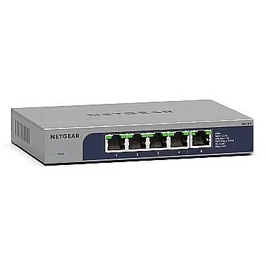 Description - MS105 NETGEAR 5-Port Multi-Gigabit Ethernet 2.5G Unmanaged Switch The NETGEAR MS305 5-Port Unmanaged Multi-Gigabit Switch helps businesses cost-effectively expand their networks at multi-gigabit speeds. The MS305 Multi-Gigabit Ethernet Switch features five 2.5G ports in a metal housing and can be placed on a desk or mounted on a wall with the included wall mount kit. This switch is energy efficient, built to last, and thoroughly tested for the reliability businesses need. 801.2p traffic prioritization and jumbo frame support allow seamless integration into more complex networks. Reliable performance Superior non-blocking network performance delivers true Multi-Gig speed without compromise Energy saving Energy Efficient Ethernet standard (IEEE 802.3az) that reduces power consumption when there is light traffic on an active port or when no link or activity is detected Plug-and-Play No software to install. Configuration is not needed. No maintenance required Quiet operation Fanless design means no noise, making it ideal for noise-sensitive environments Versatile mounting options Install the switch on a desktop or mount it on a wall using the mounting hardware provided in the package