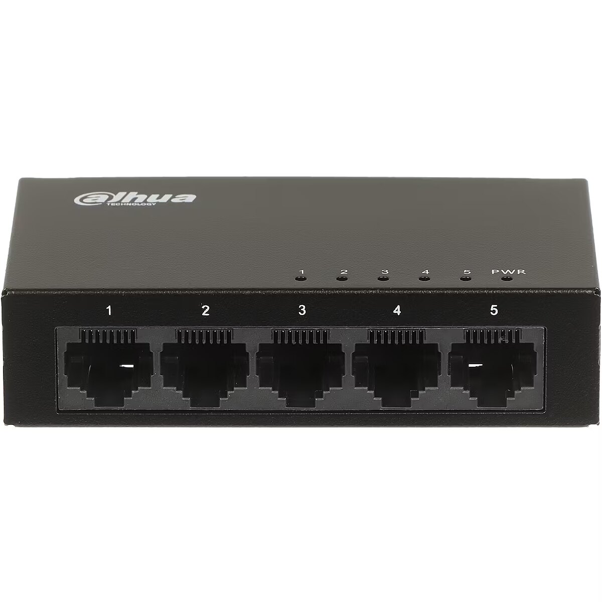 LongSummaryDescription - Dahua Technology PFS3005-5GT-L. Switch type: Unmanaged, Switch layer: L2. Basic switching RJ-45 Ethernet ports type: Gigabit Ethernet (10/100/1000), Basic switching RJ-45 Ethernet ports quantity: 5. MAC address table: 2000 entries, Switching capacity: 10 Gbit/s. DC input voltage: 5 V