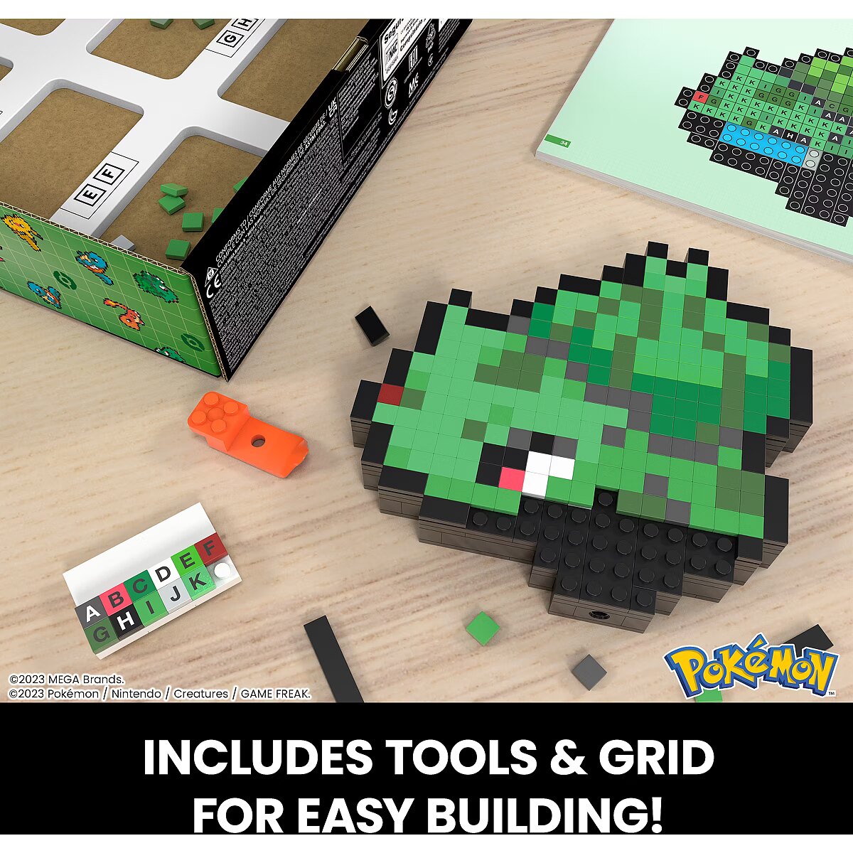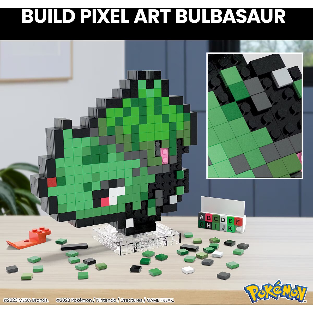 LongDesc - Decorate your space and build some of your favourite Pokémon with MEGA. Build Bulbasaur one brick at a time and create a retro-inspired figure, featuring official Pokémon Pixel Art. Display it on your desk, or mount it on the wall to show off your love of Pokémon. Pair with other Pokémon in the series; each sold separately.