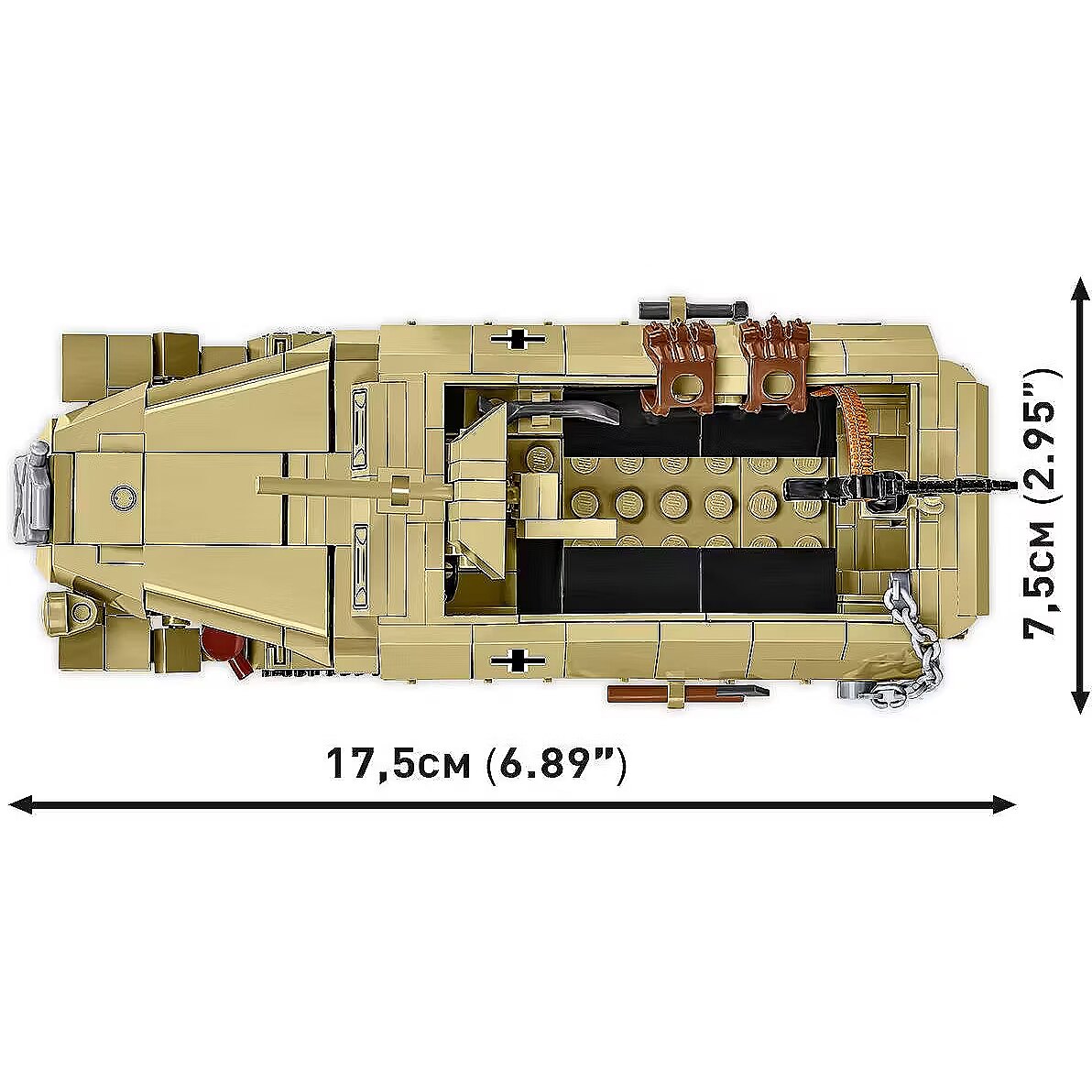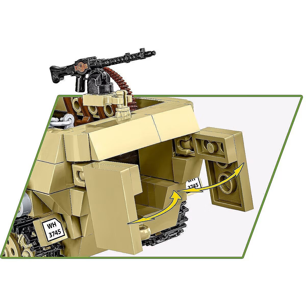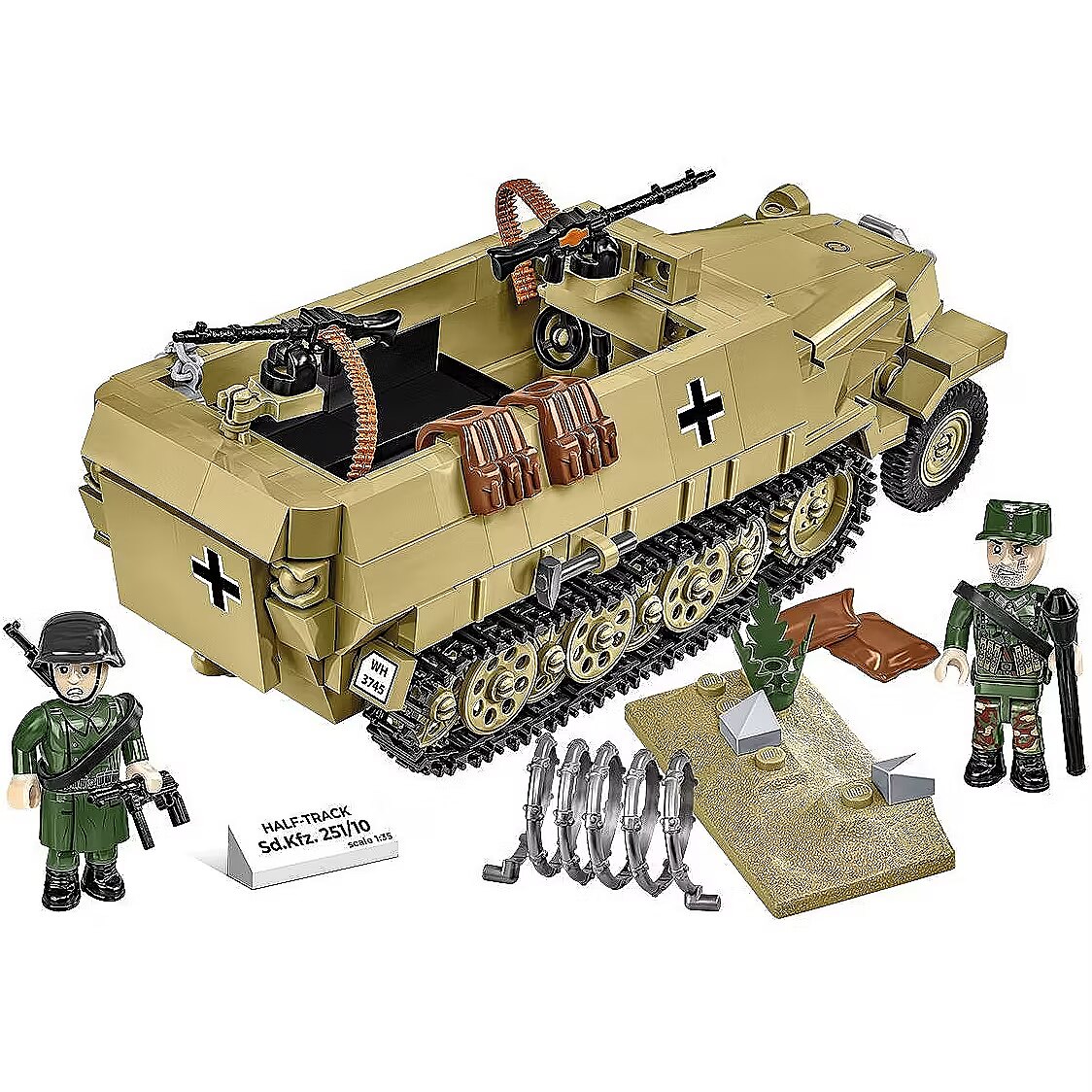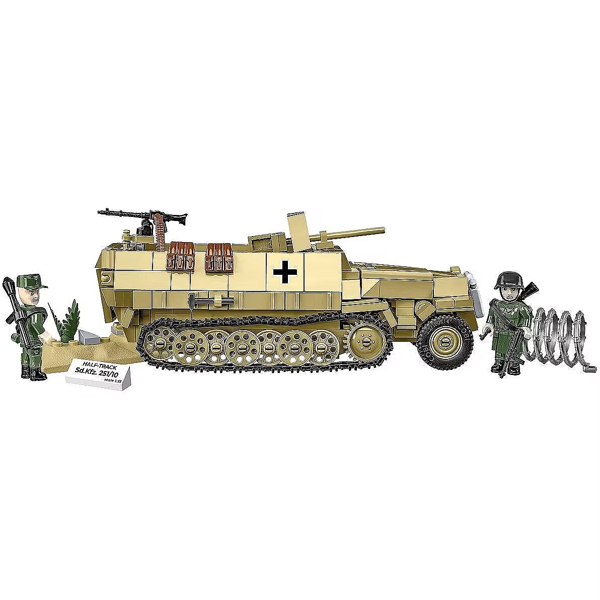 Sd.Kfz.251 to podstawowy półgąsienicowy transporter opancerzony armii niemieckiej w czasie II wojny światowej. Produkcja różnych wersji trwała już od 1939 roku. Na jego bazie budowano też inne pojazdy bojowe. Produkowany był w czterech modelach produkcyjnych, od A do D, oraz 23 podstawowych i wielu polowych wersjach, z których standardową i najliczniejszą stanowił transporter opancerzony Sd.Kfz.251/1. Opancerzony kadłub produkowany był ze spawanych płyt pancernych. Część przednia kończyła się za stanowiskiem kierowcy. Chroniła ona kierowcę, dowódcę i silnik. Otwarty z góry przedział bojowy miał pomieścić 10 żołnierzy. Tylne, duże, otwierane na zewnątrz drzwi umożliwiały dostęp do wnętrza. Wyprodukowane w UE przez firmę z ponad 35-letnią tradycją Spełniają normy bezpieczeństwa dotyczące produktów dla dzieci W pełni kompatybilne z innymi markami klocków konstrukcyjnych Klocki z nadrukami nie odkształcają się i nie bledną w czasie zabawy czy pod wpływem temperatury Klockowy model pojazdu Skala 1:35 Klocki dla dorosłych, którymi mogą bawić się dzieci
