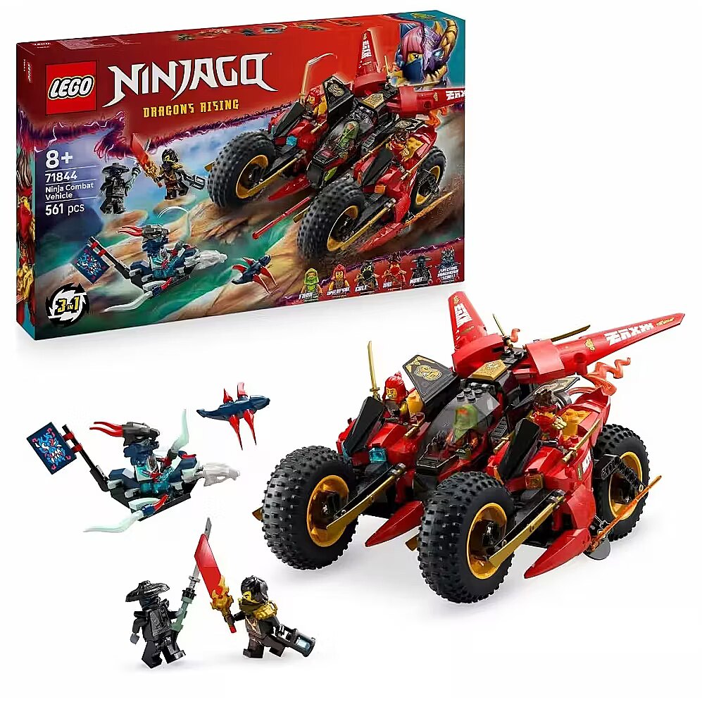 Apraksts - Ar 3-in-1 nindzju kaujas transportlīdzekļu komplektu (71844) bērni vecumā no astoņiem gadiem var izspēlēt ainas no NINJAGO seriāla Rise of the Dragons trešās sezonas. Pēc spēles ar lielo nindzju motociklu viņi var sadalīt to trīs mazākos transportlīdzekļos: Kai motociklā, Wyldfyre motociklā un Frak strūklas dzinējā ar diviem bloku metējiem. Šajā komplektā ar LEGO transportlīdzekļiem ir iekļautas sešas minifigūriņas: Kai, Wyldfyre un Fraka (pirmo reizi LEGO komplektos) ar divām zelta katanām, Colea ar caurspīdīgu atklāšanas asmeni, Nokta un Spektrālais Dragūnu izlūks, katrs ar zobenu. Turklāt komplektu papildina planieris un radības modelis. Ļaundariem ir arī baneris ar slepenu vēstījumu, ko var izlasīt tikai ar Colea caurspīdīgo atklāšanas asmeni. LEGO NINJAGO sērijas komplektos ir mehi, transportlīdzekļi un tempļi, tāpēc fani var izspēlēt stāstus kopā ar saviem varoņiem. Katru fantastisko rotaļlietu var izveidot, izmantojot LEGO Builder lietotni, kas palīdzēs jums un jūsu bērnam iziet cauri konstruēšanas piedzīvojumam. Komplektā ir 561 detaļa. 3-in-1 nindzju transportlīdzeklis bērniem - ar šo nindzju kaujas transportlīdzekļu komplektu zēni un meitenes vecumā no astoņiem gadiem var spēlēt lomu spēles gaisā un uz zemes, veidots pēc NINJAGO seriāla Rise of the Dragons trešās sezonas parauga Izvēršamais nindzju transportlīdzeklis - lielo NINJAGO transportlīdzekli var sadalīt trīs mazākos: Kai motociklu, Wyldfyre motociklu un Frak reaktīvo lidmašīnu ar diviem bloku metējiem Sešas NINJAGO minifigūriņas - Kai, Wyldfyre, Cole, Nokt, Spectral Dragoons izlūku un Frak (pirmo reizi LEGO komplektos), kā arī planiera modelis un nindzju ieroču radījums - Kai, Wyldfyre un Frak katram ir divas katanas, Cole ir caurspīdīgs atklājams asmens un laterna, bet Nokt un Spectral Dragoons izlūku rokās ir zobeni Dzimšanas dienas dāvana bērniem - šī rotaļlieta nodrošinās daudz jautras būvēšanas un spēlēšanās. Tā ir arī lieliska dzimšanas dienas dāvanas ideja zēniem un meitenēm, kuriem patīk radošas rotaļas un piedzīvojumi Foršs būvēšanas veids - LEGO Builder lietotne palīdzēs bērniem intuitīvi būvēt. Tajā viņi var saglabāt komplektus, sekot līdzi progresam, kā arī palielināt un pagriezt modeļus 3D formātā būvēšanas laikā Nindzju pasaule - LEGO NINJAGO komplekti ļauj bērniem iejusties fantastiskā piedzīvojumu pasaulē kopā ar nindzju varoņiem Izmēri - šajā 561 detaļu komplektā ietilpst nindzju kaujas transportlīdzeklis, kura augstums ir 14 cm, garums 24 cm un platums 22 cm.