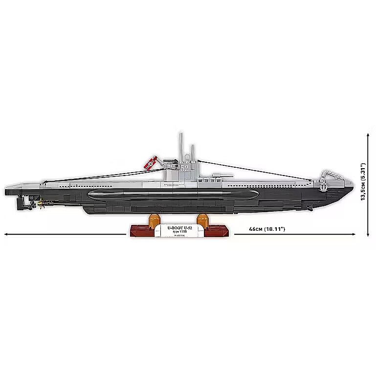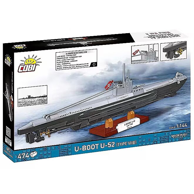 Apraksts - Iegremdējieties vēsturē un atklājiet vienas no slavenākajām Otrā pasaules kara zemūdenēm vācu zemūdenes VIIB tipa (U-boat U-52) 1:144 mēroga modeli U-Boat U-52 komplekts ir precīzi atveidots vienas no slavenākajām Otrā pasaules kara zemūdenēm modelis. Tas ir detalizēts un gatavs ieņemt goda vietu jūsu kolekcijā. Šī modeļa būvēšana ir ne tikai prieks vēstures entuziastiem un modelētājiem, bet arī unikāla iespēja uzzināt vairāk par vācu zemūdeņu flotes tumšo mantojumu. Vācijas zemūdenes tipa VIIB (U-boat U-52) modeļa galvenās iezīmes: Ideāla dāvana - meklējat dāvanu mazajam vēstures entuziastam? U-boat U-52 ir ideāla izvēle bērniem vecumā no 9 gadiem un pieaugušajiem vēstures entuziastiem, kuri novērtēs šīs 474 detaļu replikas izcilo kvalitāti un detalizāciju - Komplekts sastāv no precīzi izstrādātiem blokiem, kas ļauj izveidot īstu modelēšanas šedevru ar darbojošām, rotējošām skrūvēm. Katrs konstruēšanas posms ir īsts piedzīvojums, jo jūs atklājat arvien vairāk šīs ikoniskās zemūdenes detaļu. Augstas kvalitātes būve - Katra modeļa detaļa ir izgatavota no augstas kvalitātes materiāliem, lai nodrošinātu komplekta izturību. U-boat U-52 tips VIIB ir modelis, kas jums kalpos gadiem ilgi! Rotaļlieta un dekorācija vienā - Kad būsiet pabeiguši spēlēties, šis reālistiskais modelis kļūs par lielisku telpas dekoru, kas noteikti piesaistīs ne tikai vēstures un bloku modelēšanas cienītāju uzmanību. Iespaidīgs izmērs - 46 cm garais modelis ir gan iespaidīgs, gan ļoti precīzs, tāpēc tas ir lieliska izvēle kolekcijai un plauktam. Viegli uzbūvējams ar intuitīvām instrukcijām - Ar skaidru instrukciju palīdzību modeļa būvēšana ir vienkārša un jautra, padarot šo produktu ideāli piemērotu gan pieredzējušiem modelētājiem, gan tiem, kas tikai sāk darbu. Ekskluzīvs eksponēšanas statīvs - komplektam ir pievienots elegants statīvs, kas izceļ modeļa unikālo raksturu. Plāksnīte ar komplekta nosaukumu un modeļa mērogu palielina kopējo profesionalitāti un kolekcionāro vērtību. Izcila precizitāte mērogā 1:144. Šajā mērogā līdz sīkākajām detaļām atveidots U-52 tipa VIIB tipa U-kuģis. Šāds mērogs padara modeli ārkārtīgi iespaidīgu, taču tajā ir daudz detaļu, kas padara tā būvēšanu par prieku! Plašs klāsts - COBI piedāvājumā jūs atradīsiet arī citus komplektus, kas ļaus jums papildināt savu kolekciju ar apbrīnojamām mašīnām no sērijas HISTORICAL COLLECTION WWII Vācijas U-Boots vēsture - šausmas no dzīlēm Nosaukums U-Boot (vācu Unterseeboot saīsinājums) raisīja bailes jūrās un okeānos. Vācu zemūdenes bija efektīgu, pārsteidzošu uzbrukumu no dzīlēm simbols. To vēsture aizsākās Pirmā pasaules kara laikā, taču tieši Otrā pasaules kara laikā tās kļuva pazīstamas kā vilku bars, kas medīja sabiedroto konvojus. VII tips, kuram piederēja U-52, bija visplašāk ražotais un ārkārtīgi efektīvais modelis. Neraugoties uz tehnisko izsmalcinātību, šie kuģi bija nāvējoši arī savām apkalpēm - zemūdenes mirstības rādītājs bija viens no augstākajiem Kriegsmarine. VIIB tips - jaunās paaudzes VIIB tips bija uzlabota VIIA tipa versija. Tam bija lielāks darbības rādiuss, pateicoties papildu degvielas tvertnēm, labāka manevrētspēja un jauns torpēdmetēju izkārtojums ļāva pārvadāt līdz pat 14 torpēdām. Kuģi bija apbruņoti arī ar 8,8 cm lielgabalu, lai iznīcinātu bojātus kuģus, tādējādi ietaupot torpēdas. Kompakti, bet nāvējoši efektīvi, tie apdraudēja pat konvojus ar eskortu. U-52 - vientuļais mednieks 1937. gadā pasūtītais, 1938. gadā nolaistais un 1939. gada februārī ekspluatācijā nodotais U-52 darbojās kapteiņleitnanta Volfganga Bartena vadībā. Tā piedalījās Atlantijas okeāna kaujā, veica astoņas patruļas un nogremdēja trīspadsmit sabiedroto kuģus. Virspusē tā sasniedza 17,9 mezglu ātrumu, bet iegremdēta - 8 mezglu ātrumu. Beidzot nogremdēta Gdaņskā 1945. gadā, tā tika demontēta 19461947. U-Boat U-52 modelis ir lieliska izvēle vēstures entuziastiem, modelētājiem un kolekcionāriem. Pilns reālistisku detaļu, tas ir ideāli piemērots, lai izstādītu vēstures gabalu, ko var uzbūvēt savām rokām. Negaidiet - ienirstiet pagātnē un izveidojiet savu leģendu no dzīlēm! U-kuģis U-52 lieliski izskatās uz plaukta - gan modernā kabinetā, gan jaunā bloku modelēšanas fana istabā. Neatkarīgi no tā, vai esat jaunais modelētājs vai vienkārši meklējat unikālu un saistošu būvēšanas komplektu, šis modelis attaisnos jūsu cerības. Izveidojiet savu gabaliņu Otrā pasaules kara vēstures un padariet to par īstu savas modeļu kolekcijas akcentu. 474 augstas kvalitātes detaļas Ražots ES, ražots uzņēmumā ar vairāk nekā 35 gadu tradīcijām Atbilst bērnu produktu drošības standartiem Pilnībā saderīgs ar citu zīmolu konstruktoriem Skaidras un intuitīvas instrukcijas, kuru pamatā ir zīmējumi un ikonas Mērogi 1:144.