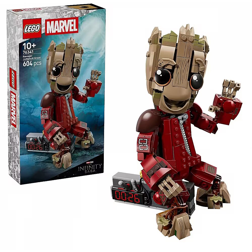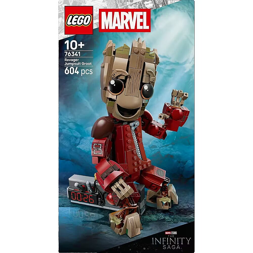 Description - Blocks Super Heroes 76341 Ravager Jumpsuit Groot Bring the adorable Baby Groot to life with the LEGO Marvel Groot in Ravager Outfit (76341) set. This fully posable figure is perfect for dynamic displays and imaginative role-play. Boys, girls, and kids aged 10 and up can build the LEGO Marvel set to relive favorite movie scenes and create endless new adventures. This collectible LEGO Marvel set features Groot in the Ravager outfit from Guardians of the Galaxy Vol. 2 by Marvel Studios. The buildable figure includes a detonator with two buttons and two movable levers, referencing the iconic scene from the film. Groot has fully posable arms, hands, fingers, hips, feet, and neck, along with eyebrows for a range of expressive facial poses. This LEGO Marvel buildable set makes a fantastic birthday gift. Kids can build with confidence using the LEGO Builder app, which lets them zoom, rotate in 3D, and track progress with easy-to-follow digital instructions. The set contains 604 pieces of creative fun.