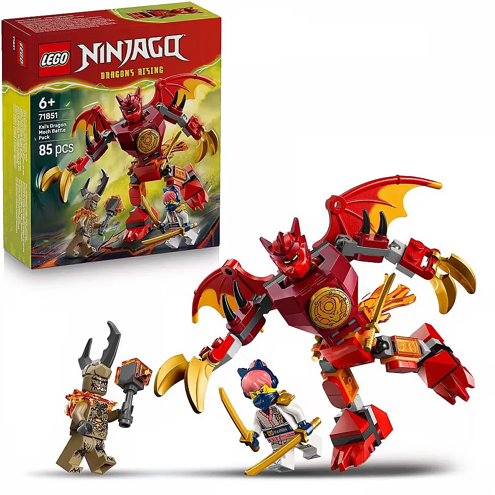 Description - Blocks Ninjago 71851 Kais Dragon Mech Battle Pack Boys, girls, and fans of the NINJAGO: Rise of the Dragons TV series, ages six and up, can enjoy hours of creative play with the LEGO NINJAGO Kai's Dragon Mech Battle Pack (71851) building set. This set features a dragon mech with posable legs, large wings, claws, a 360-degree rotating torso, and a cockpit that can seat a minifigure.