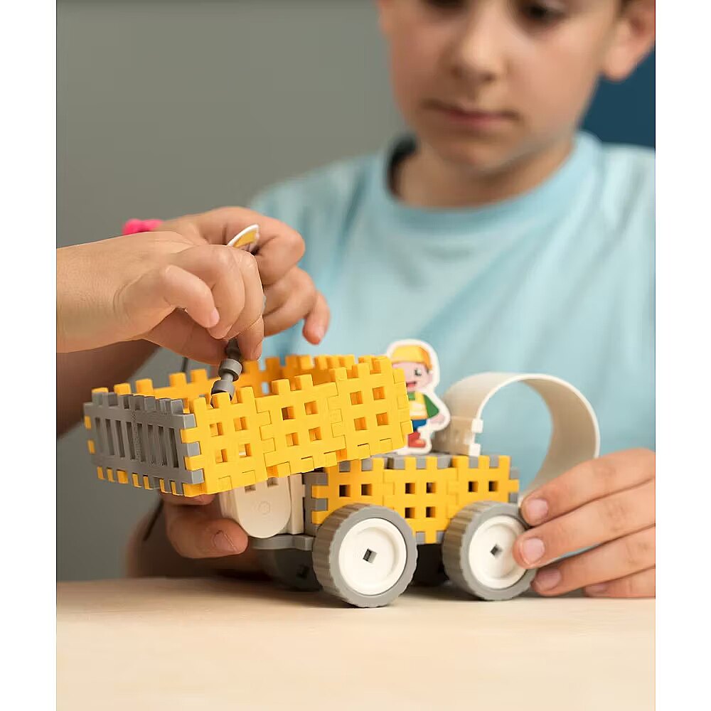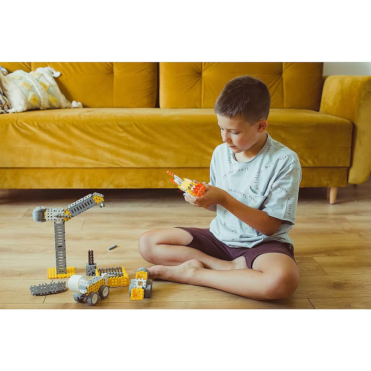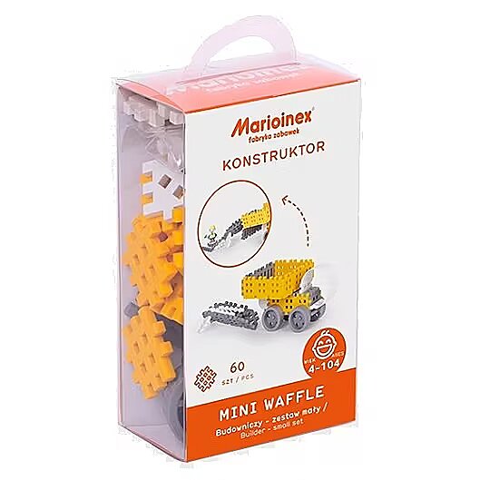 Description - BUILDERS Blocks that draw you into the whirlwind of building! Thanks to them, young builders will turn their room into a real construction site, where there will be no shortage of cranes, excavators and concrete mixers. During play, your child will take on the role of a crane operator or, as a young, talented engineer, will create the foundations for a new shopping center. The set also includes a ready-to-work construction team consisting of real professionals! The set not only develops children's imagination and manual skills, but also allows them to take on roles and teaches logical thinking. Marioinex - safe blocks for children Marioinex blocks are designed to be as friendly and safe as possible for children. They are made of flexible, soft and pleasant to the touch material. Their shape has been perfectly matched to the shape and size of children's hands, and the colors used are gentle and pleasing to the eye. Marioinex thematic sets Thematic sets of blocks from the Marioinex line can be collected and used to compose buildings of your own idea. Advantages of the BUILDERS set: Development of imagination and creativity Learning and development through play Introduction to engineering and building Hours of entertainment For girls and boys 100% safe form Attractive fun for children and adults Blocks manufactured in Poland Warning Toy not suitable for children under 4 years. Contains small parts that are easy to swallow. This product meets European standards. Remove packaging elements before giving the toy to a child. Keep the label as it contains important information. The colours of the elements may differ from those presented on the packaging. Maintenance The product can be cleaned in a dishwasher and washing machine in a suitable bag at 30 degrees.