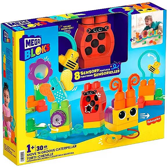 LongSummaryDescription - MEGA BLOKS Move 'n Groove Caterpillar. Product type: Building set, Recommended age (min): 1 yr(s), Material: Plastic, Number of pieces: 30 pc(s). Package weight: 928.1 g