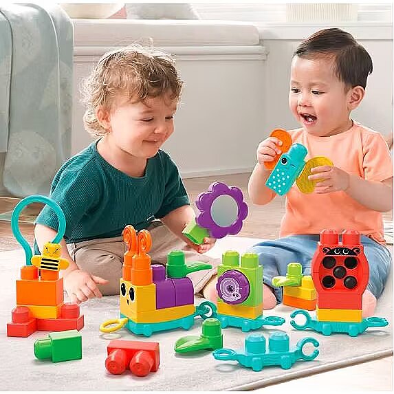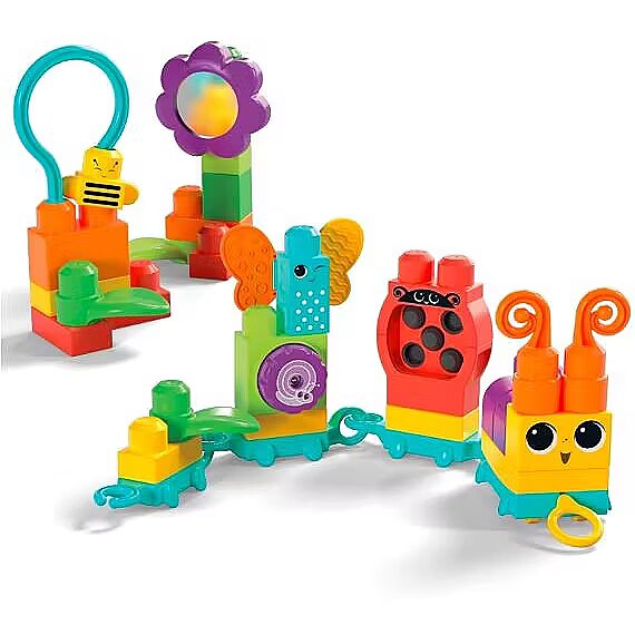LongDesc - Mazie celtnieki kustēsies un gremdēsies kopā ar šo apburošo kāpurķēžu vilcieniņu. Mazuļi var uzbūvēt kāpuru vilcienu ar kustību un ķēdes blokiem, kā arī vilkšanas auklu priekšpusē, lai tas varētu kustēties. Pēc tam viņi var pievienot bārenīti ar popbloku, gliemežvāku ar pagrieziena un klikšķa funkciju un tauriņu ar teksturētiem spārniem uz kāpura muguras, kas pievienosies braucamrīkam. Mazuļi var atklāt arī spoguļzirdziņu, teksturētas antenas un bišu pērlīšu bloku.