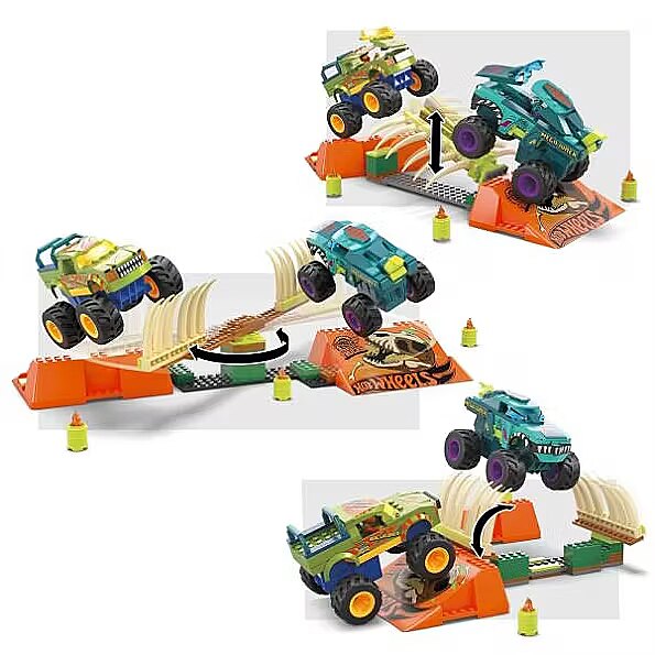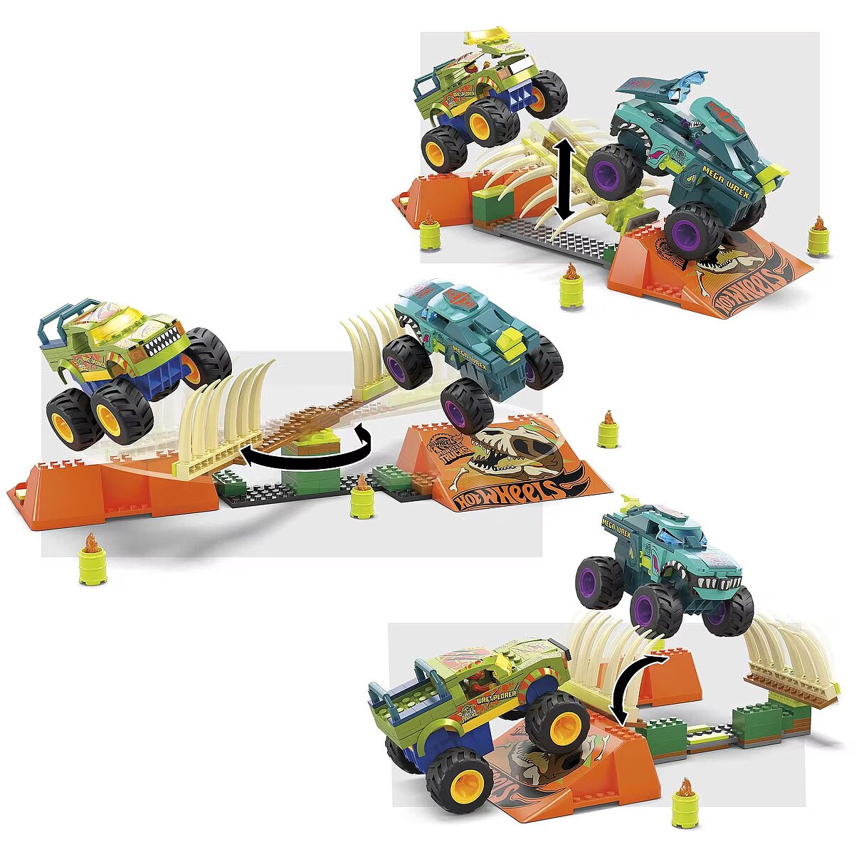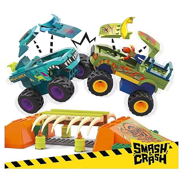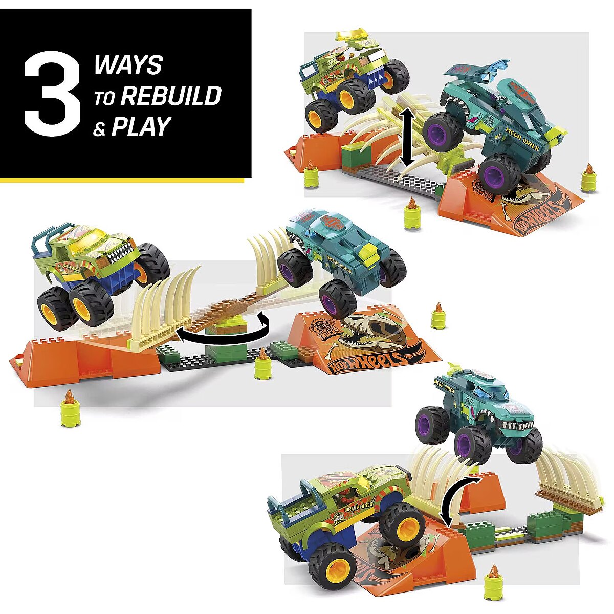 LongDesc - Get ready for epic Smash & Crash action that kids will love with this Hot Wheels building toy that includes Mega-Wrex and Wrexplorer monster trucks. With 3 ways to rebuild the ramps and obstacle, kids can race, crash and smash by pulling the vehicles back and letting them go for a jump stunt to watch the pieces fly off on impact. The included buildable micro action figures fit in the driver's seat.