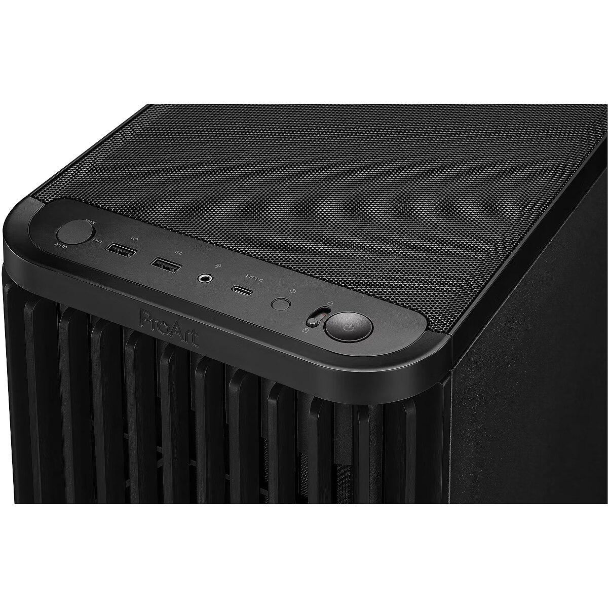 LongDesc - Metal PanelNatural Elegance, Optimal AirflowThe ProArt PA401 Wood Edition showcases a wooden front panel that creates a distinctive, elegant style while promoting sustainability. The wood used is certified by the Forest Stewardship Council® (FSC®), and is finished using a six-stage process. The case also boasts optimal built-in cooling, with two 160mm front fans and one 120mm rear fan, along with an integrated fan hub, enabling optimal airflow.COOLINGExceptional Cooling PerformanceThe PA401 Wood Edition features a front grille with 33% porosity to maximize airflow and ventilation. Meanwhile, built-in dual 160mm front fans efficiently deliver up to 138cfm of airflow to graphics cards and CPU coolers, and the outer ring connecting these fan blades helps reduce initial vibration. The front fans and the 120mm rear fan with PWM control yield optimal airflow, low noise, low vibration and high reliability.Natural EleganceCrafted WoodAsh wood, an uncommon choice for this style of case, has been selected for its durability. The special six-stage production process used to create the front panel begins with thermowood treatment, protecting the wood from insects, humidity and heat. The panel material is then shaped to exact specification. Finally, a two-step coating elevates the unique Ash grain with a glossy finish.The ash wood used for ProArt PA401 Wood Edition is sustainably sourced and is certified by the FSC®.ConnectivityFlexible, Fast I/OConnectivity options are easily accessible via the front I/O panel, including one two-section PWM control, one 20Gbps USB Type-C® port, two USB-A 3.0 ports, HD audio and a Power and Reset button lock.Premium Fan Speed ControlWith integrated PWM control, fan speed adjusts automatically, making it easy to switch between normal and working scenarios and intensive scenarios.20Gbps USB Type-C®The PA401 Wood Edition incorporates one 20Gbps USB Type-C port for current and future devices and connectivity with compatible motherboards.Power and Reset Button LockThis lock prevents the user from accidentally pressing the Power and Reset buttons.DesignBuilder-Friendly InstallationThe ProArt PA401 Wood Edition optimizes the PC building experience, offering better functionality with user-focused features.CompatibilityCompact Form, Ample InteriorThe ProArt PA401 Wood Edition features two pre-installed 160mm front fans and accommodates both horizontal and vertical graphics card mounting.Versatile ChoicesTo accommodate the preferences of diverse builders, the PA401 Wood Edition comes in two versions. The metal side panel version focuses on durability, whereas the tempered-glass version offers durability while providing a window for showing off internal aesthetics.