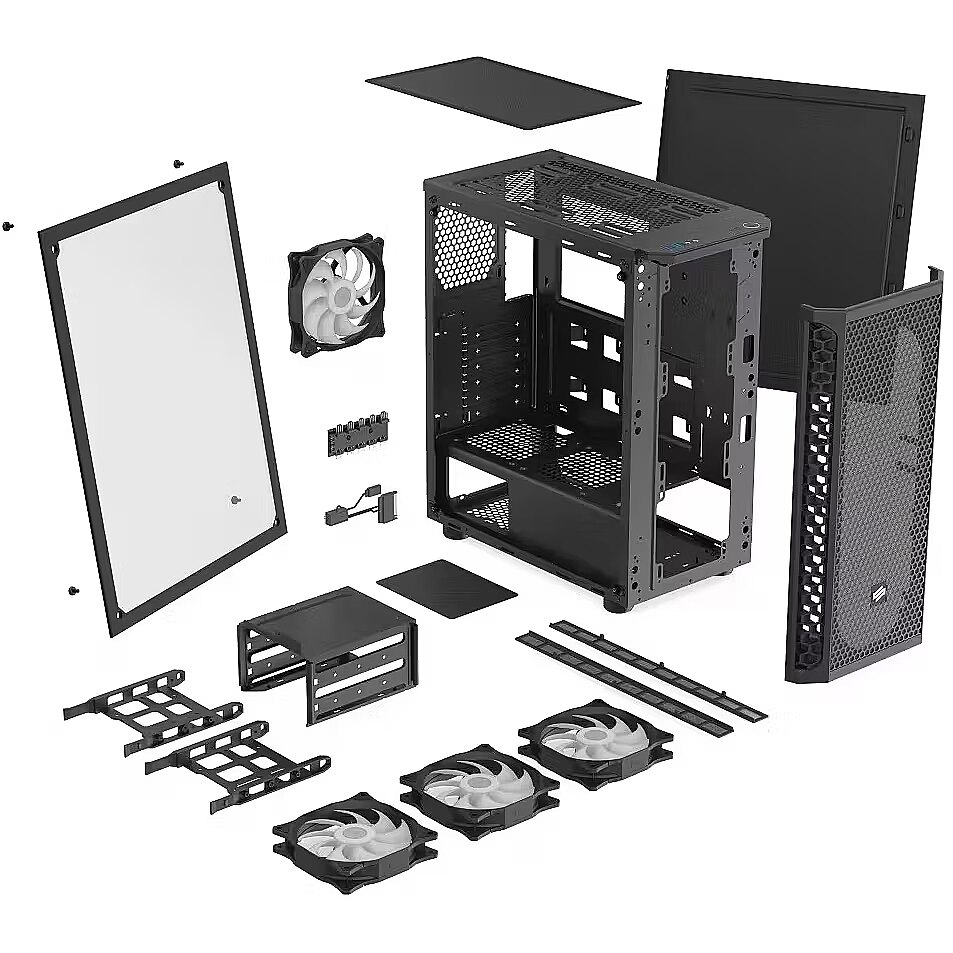 Tehniskie dati: Integrēts aizmugurējais apgaismojums - jā (3-pin ARGB: četri adresējami 120 mm ARGB ventilatori + kontrolieris)