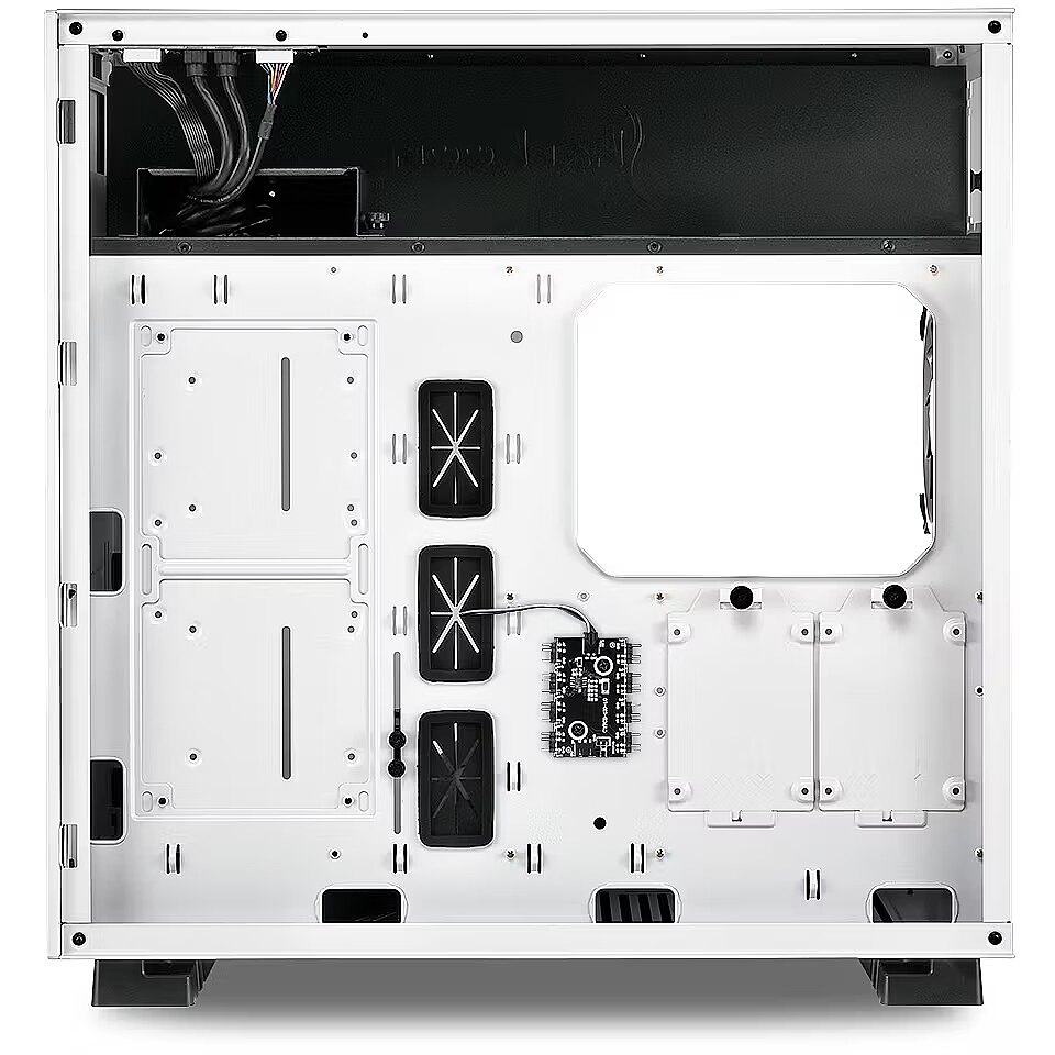 Technical_details - external: not available Internal: 1x 2.5"/3.5", 1x 3.5", 2x 2.5" Front I/O: 2x USB-A 3.0, 1x headphone, 1x microphone PCI-slots: 7 Fan(s) (front): not available Fan(s) (rear): 1x 120mm (RGB illuminated) Fans (left): not available Fans right: 2x 120mm (RGB illuminated) Fan(s) (top): not available Fan(s) (bottom): 1x 120mm or 2x 120mm (optional) Fans (other): not available Radiator sizes: 120/?240/?360mm bottom, 120/?240mm right Motherboard: to E-ATX Supported motherboards: ATX (12"x9.6")/E-ATX (SSI CEB, 12"x10.5")/E-ATX (SSI EEB, 12"x13") Power supply: ATX (max. 295mm deep) Power supply position: top CPU Coolers: to max. 160mm height Graphics Cards: to max. 420mm Colour: white, inside black Dimensions (WxHxD): 210x475x474mm Capacity: 47.28l Weight: 8.66kg Special features: Cable Management, dust filter, Graphics Cards mounting, side panel window made out of glass, RGB-Header 3-Pin (+5V/?DATA/?GND), integrated LED control