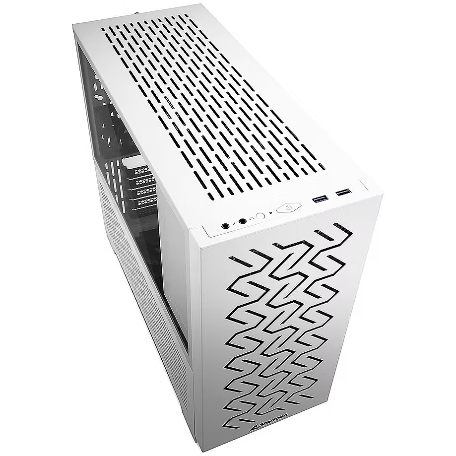 Technical_details - MS-Z1000, tower case With the MS-Z1000, Sharkoon presents a Micro-ATX case that combines a stylish design with sophisticated functionality. Its steel front panel not only has a unique look, but also optimal air permeability for cooling even large, powerful components. The side panel made of tempered glass can be positioned either in front of the power supply tunnel above or on the underside to optimally display selected components. The MS-Z1000 owes its name to its steel front panel. Its Z-shaped openings give the housing an expressive look that still fits stylishly anywhere. The open design also ensures good airflow, with cool air being sucked in at the front and expelled as warmed-up exhaust air directly at the top or back of the case. Despite its compact size, the MS-Z1000 is also designed for high-performance hardware. The MS-Z1000 has a total of six fan mounting options for effective cooling. An 80mm PWM fan is already pre-installed on the back, as well as a 120mm PWM fan on the bottom and two on the top. In addition, a second fan with a diameter of 120 millimeters can be installed on the underside and on the front. On the top there is space for a radiator including a fan with a height of up to 5.5 centimeters. You can't tell how spacious it is, but the MS-Z1000 also has room for large components. For example, a graphics card with a length of 36 centimeters can be installed as long as no fans are installed on the front. With fans on the front, graphics cards with a length of up to 33.5 centimeters can be installed. Power supplies with a length of up to 16 centimeters are cleverly installed on the top of the case to offer even more space. Thanks to its compact size, the case fits almost anywhere. Thanks to the side panel made of hardened glass and its stylish look, it cuts a fine figure on the desk, especially as a hardware showroom - and without taking up too much space. Type: Tower case Color white EAN code: 4044951035106 Design: mini tower Mainboard form factor: µATX Window Kit: Yes Internal dimensions: plug-in card length | maximum 360 mm Internal measurements: CPU cooler height | maximum 135 mm Internal dimensions: PSU form factor | ATX Internal dimensions: PSU length | maximum 160 mm Drive bays: 3.5 inch | internal | 1 piece Drive bays: 2.5 inch | internal | 3 pieces Slots: Full Size | 5 pieces Front ports: 2x audio, 2x USB-A 3.2 Gen 1 (5 Gbps) Front connectors: The designation USB 3.2 Gen 1 corresponds to the former designation USB 3.1 Gen 1 / USB 3.0. Front: 1x 120mm fan installable Rear: 1x 80mm PWM fan (pre-installed) Notes: Tempered glass side panel, Case top: 2x 120mm PWM fan (preinstalled), Case bottom: 1x 120mm PWM fan (preinstalled), 1x 120mm fan (optional), Interior painting Water cooling possible: Yes Water cooling possible: Supported radiators | Above: up to 240 mm (maximum height 5.5 cm) Additional information: Thanks to the separately available, optional Compact Vertical Graphics Card Kit, the MS-Z1000 also offers the option of vertically installing graphics cards with a length of up to 27 centimeters. The vertical installation of graphics cards enables an even more effective presentation of the card and particularly emphasizes the lighting elements behind the glass side panel. Dimensions: Width: 170mm x Height: 362mm x Depth: 425mm Weight: 5.7kg