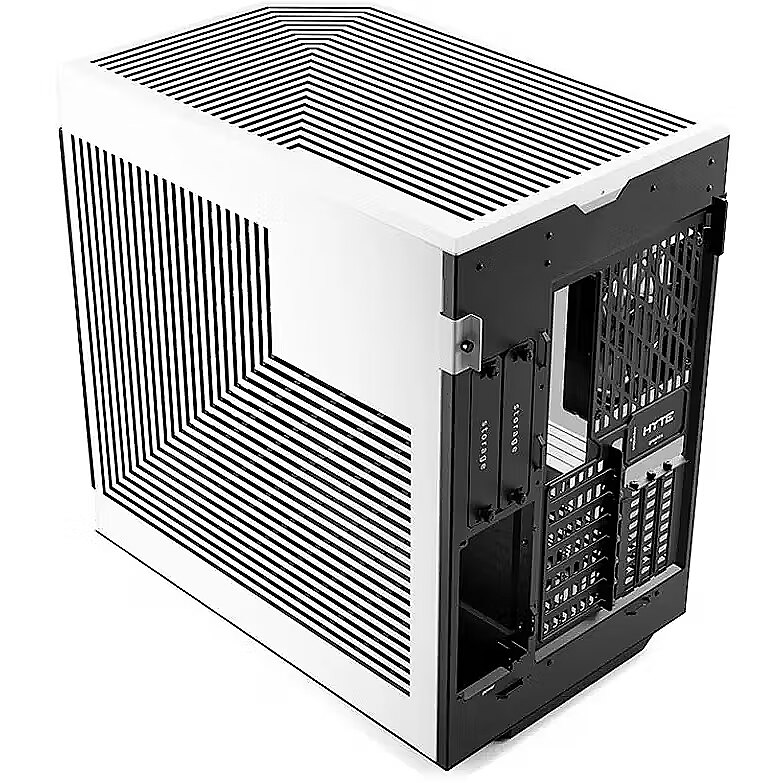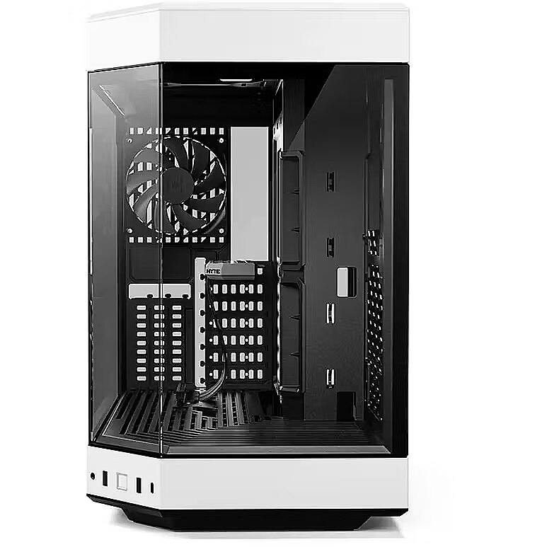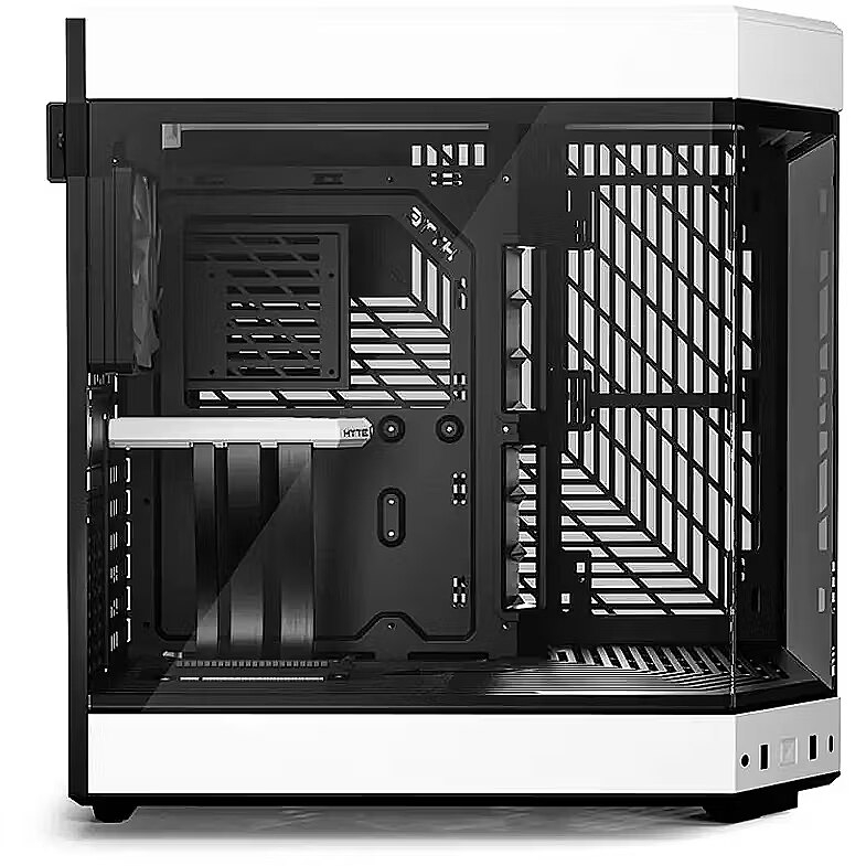 Technical_details - The HYTE Y60 PC case features a 3-piece panoramic tempered glass design. With a simple rotation, the system can be viewed as it should be viewed from the left or right side of the desk. Vertically Mounted GPUs Only: Why Would You Want to See Your Graphics Card Any Other Way? A PCIE 4.0 riser cable is included. A protective riser cable cover blends beautifully into the chassis, allowing PCIE cards to be housed half-height behind the vertical graphics card throne. The protective cover is the first of its kind designed specifically for the Y60. Hotspots are eliminated, with side vents and fans tastefully housed in the lower section of the Y60. The three pre-installed Flow FE12 fans with fluid dynamic bearings ensure whisper-quiet operation. Item no.: 1897552 Tower case type color white EAN 1220000350380 Manufacturer no. CS-HYTE-Y60-WW Midi tower design Motherboard form factor E-ATX Material tempered glass, steel, ABS plastic Window Kit Yes Internal dimensions plug-in card length maximum 375 mm Supported Radiators Side: 120, 140, 240, 280mm up to 150mm thickness, Top: 120, 240, 360mm up to 28mm thickness, Back: 120mm Drive bays 3.5 inch internal 2 pieces Slots full size 3 pieces Front connections 1x audio, 2x USB-A 3.2 Gen 1 (5 Gbit/s), 1x USB-C 3.2 Gen 2 (10 Gbit/s) Rear 1x 120 mm fan available (1300 rpm) Remarks Dust filter (top, side, bottom), 2x 120 mm fans on the bottom of the housing (1300 rpm), another 120 mm fan can be installed, alternatively 2x 140 mm fans can be installed, 3x 120 mm Fan can be installed on the top, 2x 140 mm or 2x 120 mm fans can be installed in the side panel Water cooling possible Yes Volume 60 l Dimensions Width: 28.5 cm x Height: 46.2 cm x Depth/Length: 45.6 cm Weight 9.6kg