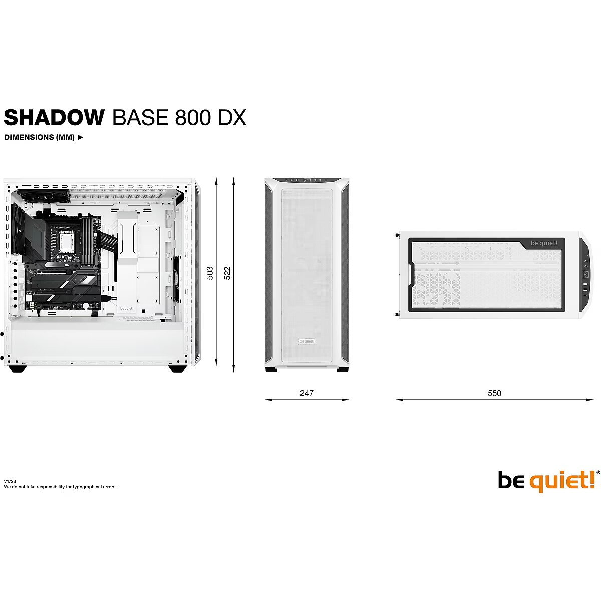 ShortSummaryDescription - be quiet! Shadow Base 800 DX White, Midi Tower, PC, White, ATX, EATX, micro ATX, Mini-ITX, Acrylonitrile butadiene styrene (ABS), Steel, Tempered glass, Multi