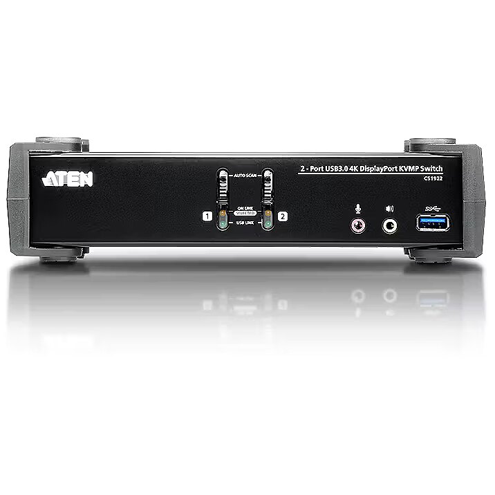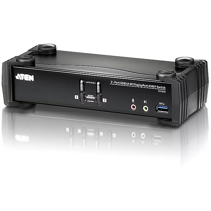 LongDesc - The ATEN CS1922 2-Port USB 3.0 4K DisplayPort KVMP™ Switch provides the latest innovations in desktop KVM switching technology for the increasing demand of higher video quality and transfer speeds on modern computers. The ATEN CS1922 offers an unprecedented performance of delivering 4K resolution, the next generation USB 3.1 Gen 1 hub with SuperSpeed 5 Gbps data transfer rates and enhanced user-friendly operations.1x CS1922 2-Port USB 3.0 4K DisplayPort KVMP™ Switch2x LIN5-20K1-K13G DisplayPort Cables2x LIN6-11C1-E12G USB 3.0 Cables2x LIN5-0205-21CG Audio Cable2x LIN5-0205-21DG Audio Cable1x 0AD8-8005-40MG Power Adapter1x LIN2-418K-E12G Power Cord1x User Instructions