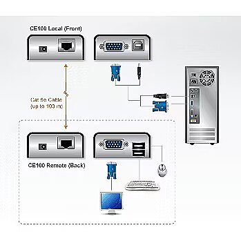 LongDesc - The CE100 USB KVM Extender with superior video quality and built-in ESD protection allows access to a computer system from a remote USB console (USB keyboard, USB mouse, and monitor).1x CE100L Mini USB KVM Extender (Local Unit)1x CE100R Mini USB KVM Extender (Remote Unit)1x LIN5-21X1-X27G USB/VGA Cable (1.8m)1x 0AD6-1705-10EG Power Adapter (for Remote Unit)1x Mounting Kit1x User Instructions