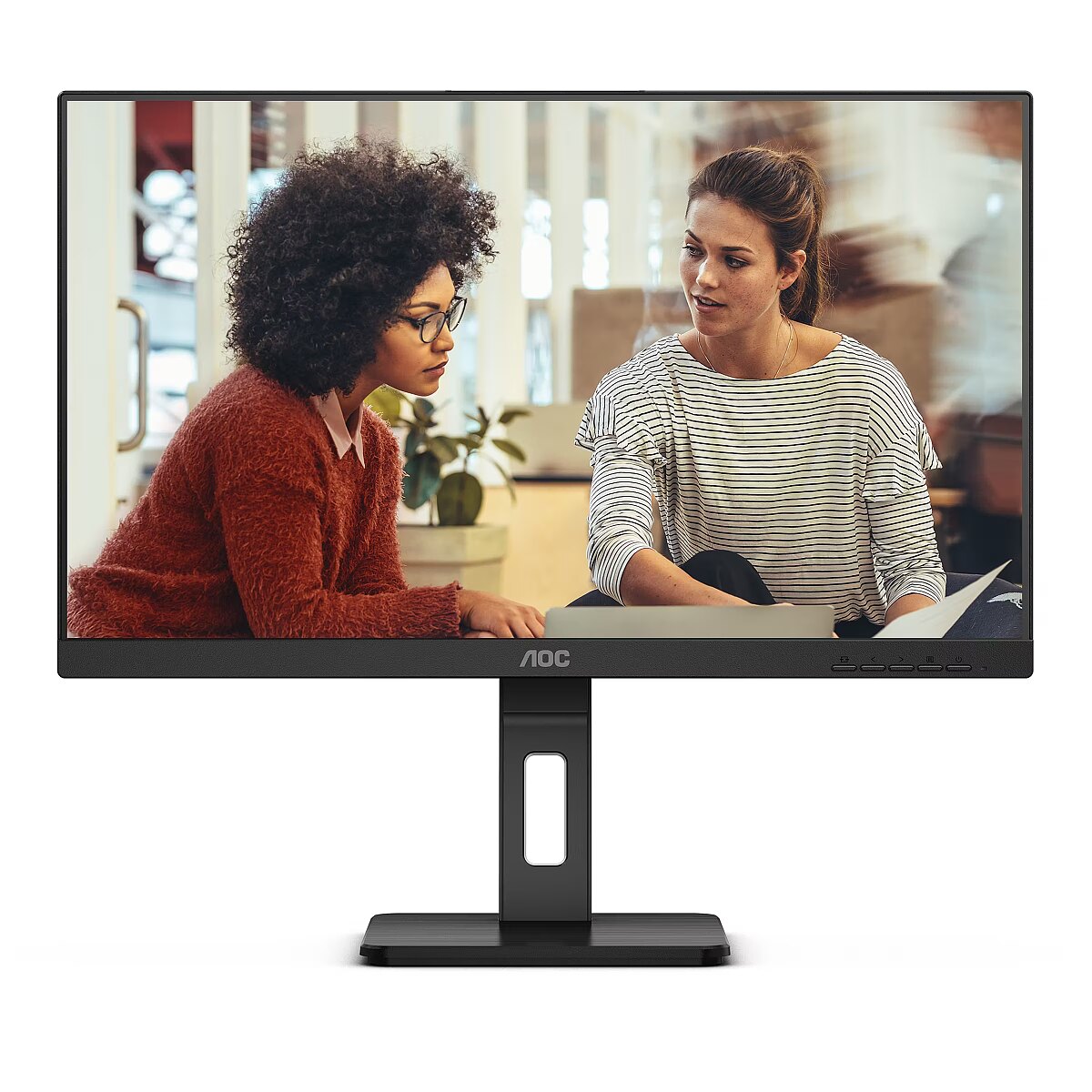 LongDesc - 27" FHD IPS monitor with essential features to get the most out of long working hours. Technologies including Adaptive Sync, Flicker-Free, Low Blue Light, & full ergonomic features will support you while working and studying.The AOC 27E3QAF provides all the elements you need for work or study. This model combines a large 27-inch IPS panel with a wide viewing angle and FHD resolution, eye-care features such as low blue and flicker-free mode, and built-in speakers for easy enjoyment of high-quality audio. For a tidy workstation, this model also offers cable management. To ensure maximum working comfort, the 27E3QAF is fully ergonomic. Your productivity will be complemented by adaptive synchronization and a 100Hz refresh rate to ensure a smooth and tear-free playback experience, whether you're working on documents or watching content.