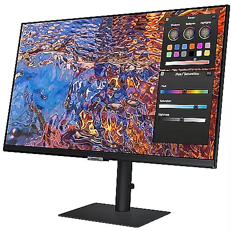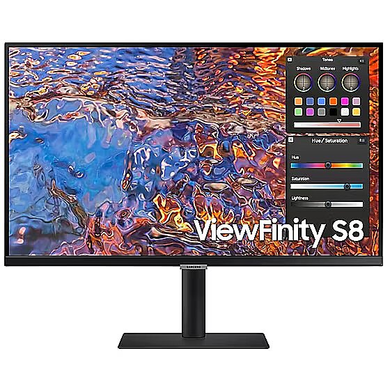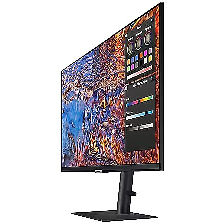 Summary - Samsung S80PB. Display diagonal: 68.6 cm (27"), Display resolution: 3840 x 2160 pixels, HD type: 4K Ultra HD, Display technology: LCD, Response time: 5 ms, Native aspect ratio: 16:9, Viewing angle, horizontal: 178°, Viewing angle, vertical: 178°. Built-in USB hub. VESA mounting, Height adjustment. Product colour: Black