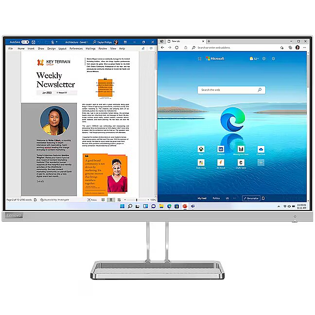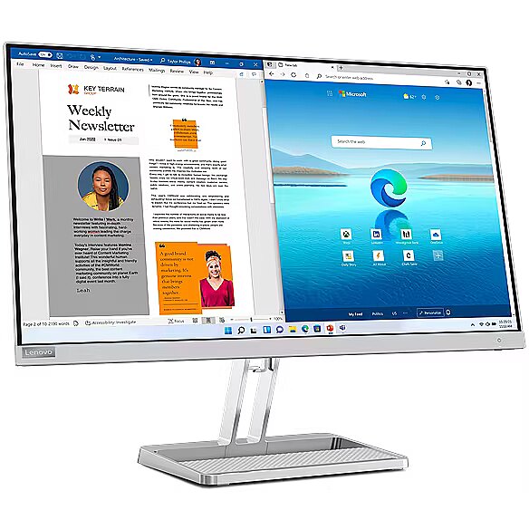 Lenovo L27i-40 monitora 27 collu ekrāns nodrošina pietiekami daudz vietas, lai ērti skatītu divus logus blakus. Krāsas, kas atdzīvojas