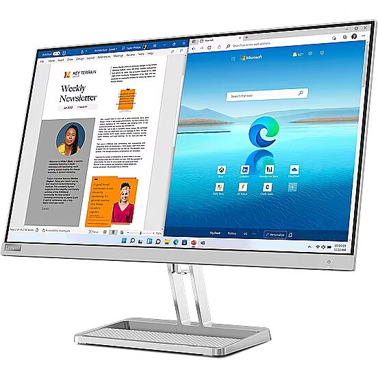 Lenovo L27i-40 Monitori 27-tolline ekraan pakub piisavalt ruumi kahe akna mugavaks kõrvuti vaatamiseks. In-Plane Switching paneeli lai vaatenurk tagab, et iga vaatenurga alt vaadates on pilt järjepidev. Värvid, mis elustavad