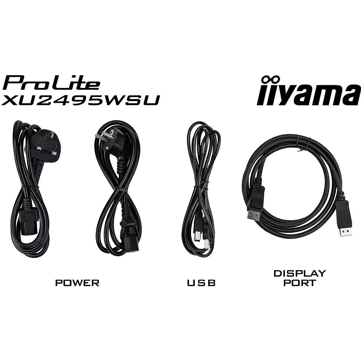 LongSummaryDescription - iiyama ProLite XU2495WSU-B7. Display diagonal: 61 cm (24"), Display resolution: 1920 x 1200 pixels, HD type: Full HD, Display technology: LED, Response time: 4 ms, Native aspect ratio: 16:10, Viewing angle, horizontal: 178°, Viewing angle, vertical: 178°. Built-in speaker(s). Built-in USB hub, USB hub version: 3.2 Gen 1 (3.1 Gen 1). VESA mounting. Product colour: Black