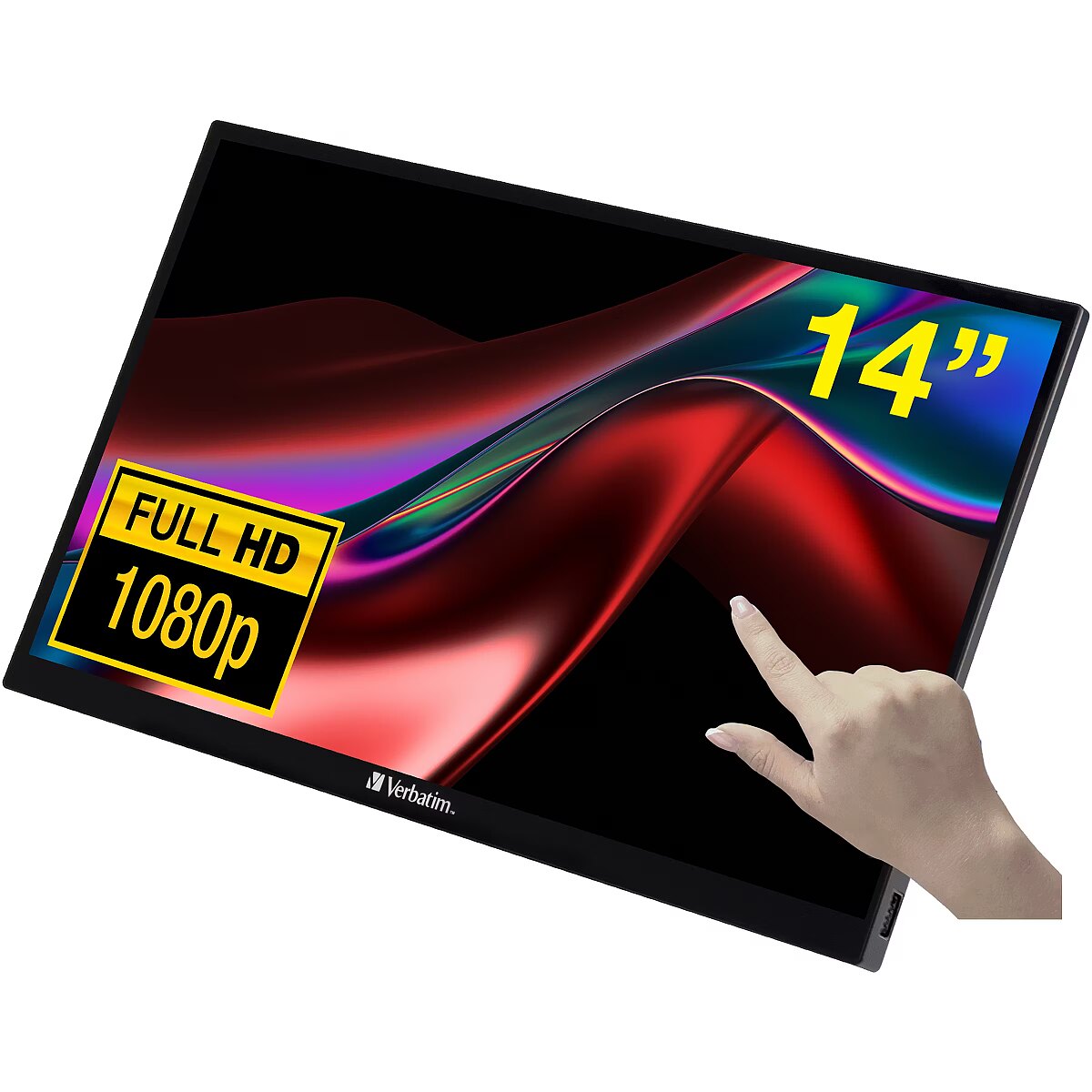 LongDesc - Touchscreen ControlThe Verbatim Portable Touchscreen Monitor gives you an extra dimension for your work and play. You can use it as a second screen for your laptop when you are travelling or giving one-on-one presentations, or to provide a large additional display for your phone, tablet, or portable gaming system. Compact and versatile, the portable monitor gives you ultimate flexibility for increased productivity and entertainment while on the go.The responsive and intuitive touch screen with 10-point touch functionality supports swipe, scroll, drag, and pinch gestures to help you get your tasks done efficiently. It’s the ideal solution to help you overcome one-screen limitations outside the office, extending your visual experience, anytime and anywhere.Full HD resolutionDelivering 16.7M colours in 1080p or full HD, the Verbatim Portable Monitor utilizes in-plane switching technology (IPS) to produce a sharper and more accurate picture and wide viewing angle on its 16:9 screen. The built in kickstand enables the monitor to be set up at the angle that suits you best in a position of your choice helping to improve comfort and overall productivity.The display incorporates high-dynamic range (HDR) technology which improves picture quality – significantly expanding the range of both contrast and colour – giving the image more “depth” and creating a fantastic viewing experience.One cable connectionThe portable monitor connects via USB-C meaning that power, data, and video is all transferred using a single cable. Just connect it to your laptop, Mac, tablet, phone, or games console, and start sharing screens!* There is also an HDMI cable included for those requiring connection via HDMI. Using HDMI requires the use of a power supply, which is also included. For touch function support, an additional USB cable is required. The power supply also supports longer use for devices connected via USB-C.Lightweight and slimline, the portable touchscreen monitor easily fits most travel bags. Built in a solid and durable aluminium housing and with an included Neoprene protective sleeve, it’s a perfect companion for those trips away.