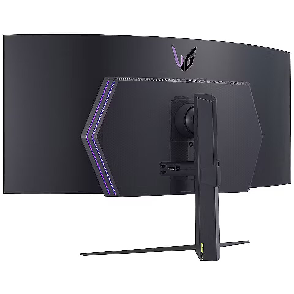 Tehniskie parametri: Ekrāna izmērs: 45″ (114 cm) Izšķirtspēja: 3440 × 1440 (WQHD+) Panelis: izliecis IPS Atsvaidzes intensitāte: 165 Hz Reakcijas laiks: 1 ms (GtG) Spilgtums: līdz 600 nitiem (HDR), aptuveni 400 nīti SDR Kontrasts: 1000:1 Krāsu gamma: ~99 % sRGB HDR: HDR10 Sinhronizācija: G‑Sync Compatible, FreeSync Premium Pievadi: 2× HDMI 2.1, 1× DP 1.4, 2× USB‑C (viens ar PD 65 W), USB‑hubs Skaņa: 2× 10 W stereo skaļruņi Ergonomika: augstuma regulācija, slīpums, VESA 100×100 mm Krāsa: tumši pelēka matēta